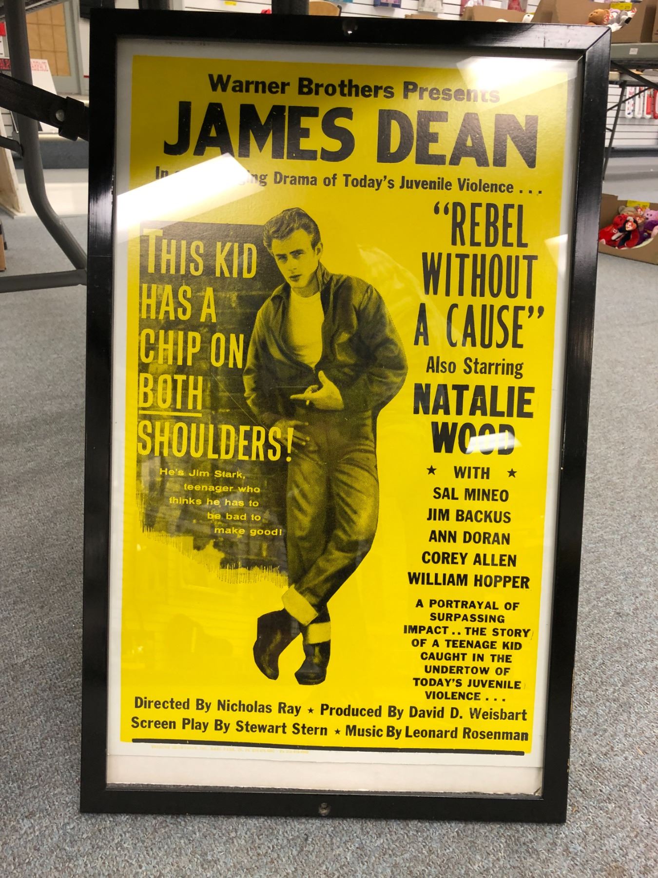 Framed Warner Brothers Presents James Dean "Rebel Without A Cause" movie advertisement