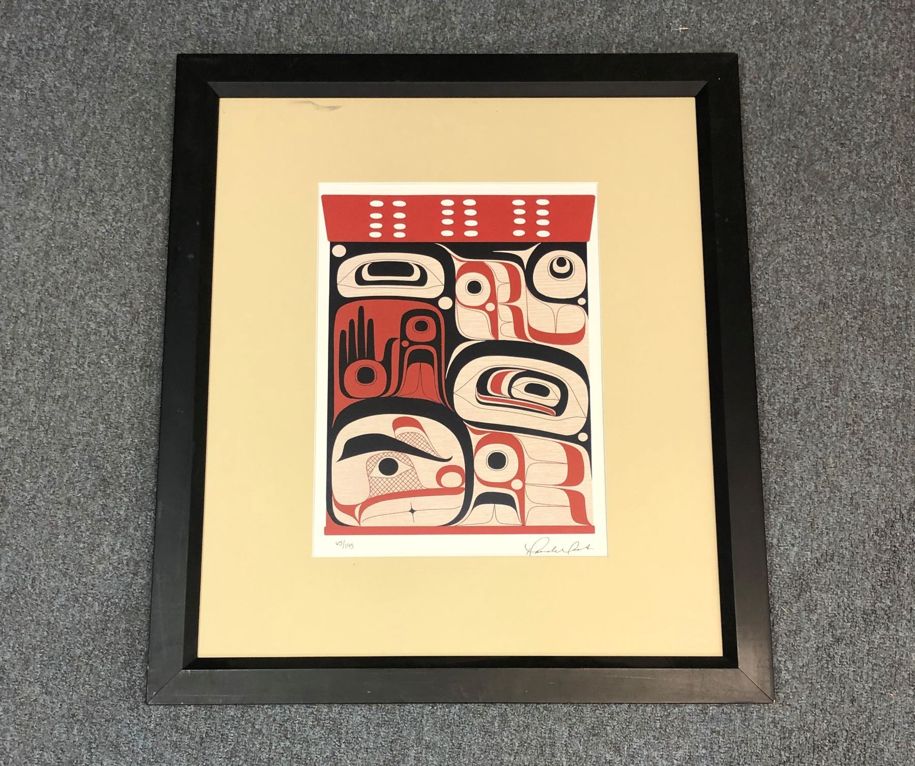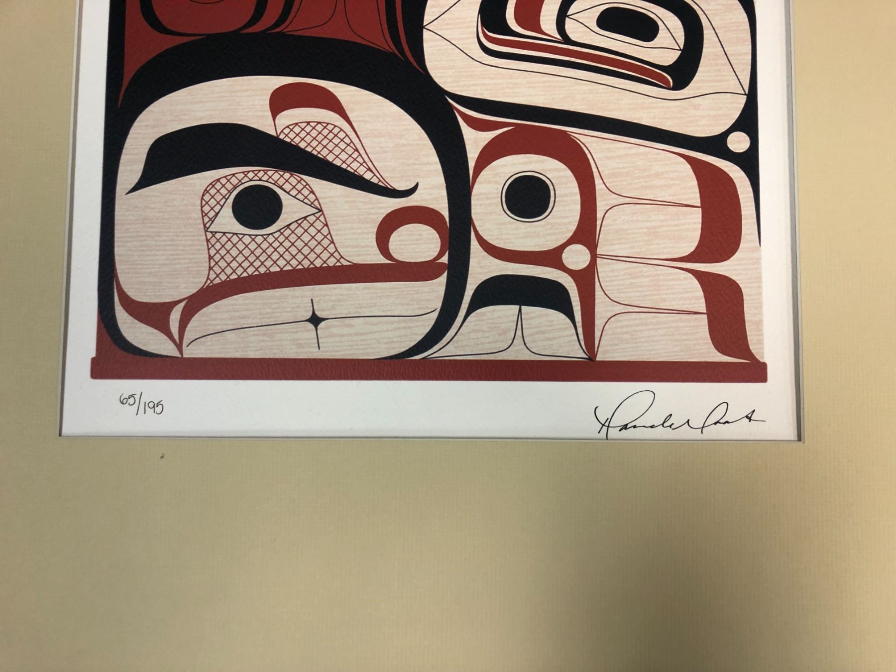 Framed limited edition #65/195 print signed by artist - Indigenous art image approx. 30" x 27"