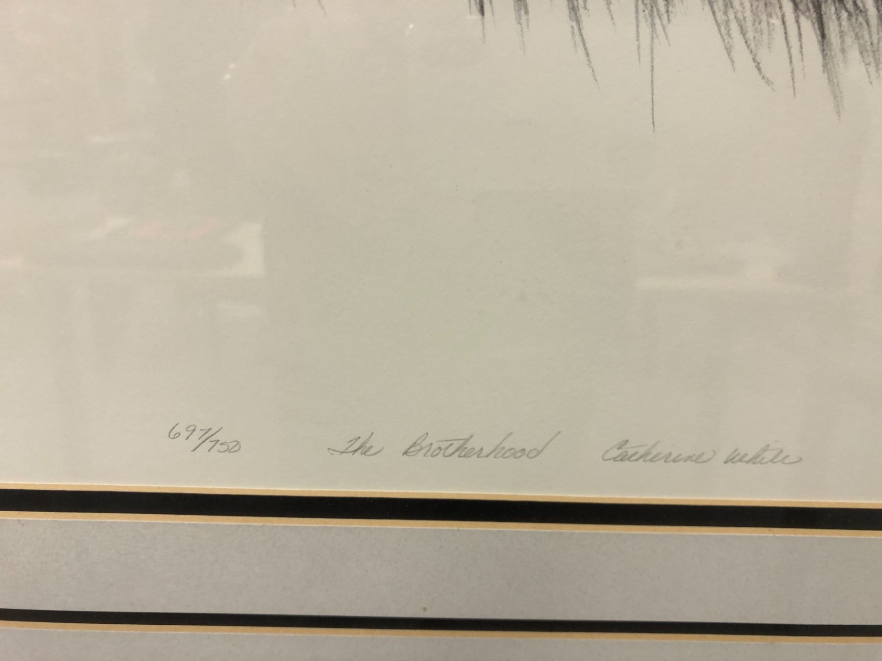 Framed limited edition Catherine White print "The Brotherhood" #697/750 signed by artist Nov 1987 - approx. 39in x 32in