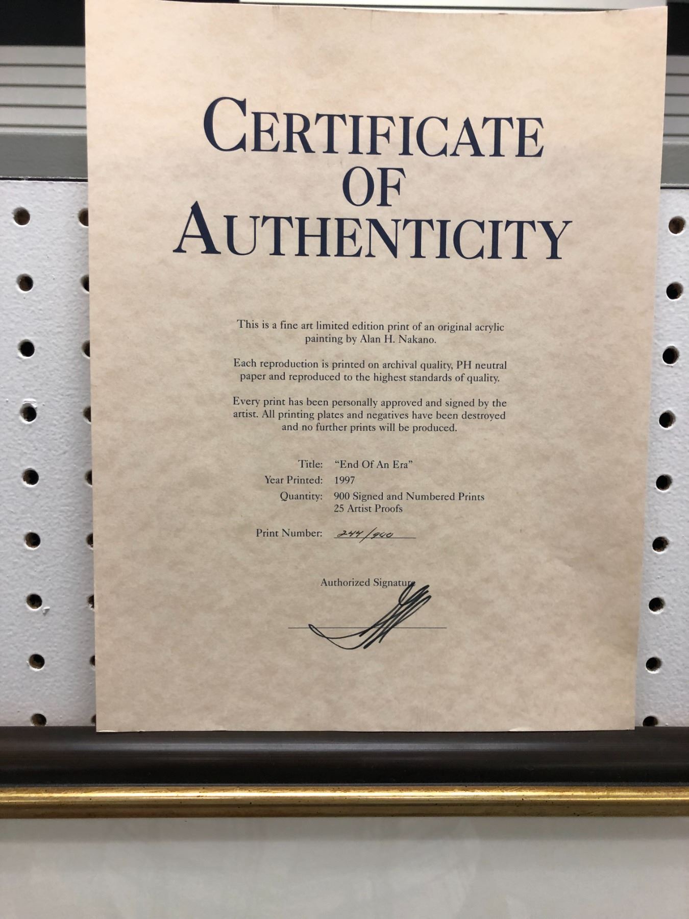 Framed limited edition print "END OF AN ERA" #244/900 by Alan H. Nakano w/ COA - approx. 33in x 23in