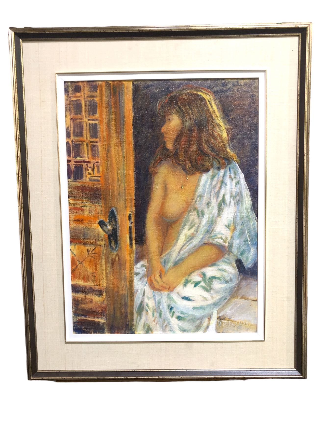 Framed original "Girl Looking Away" "Seule" painting on canvas signed by artist D.J.P. - approx. 24in x 18in canvas