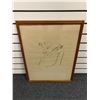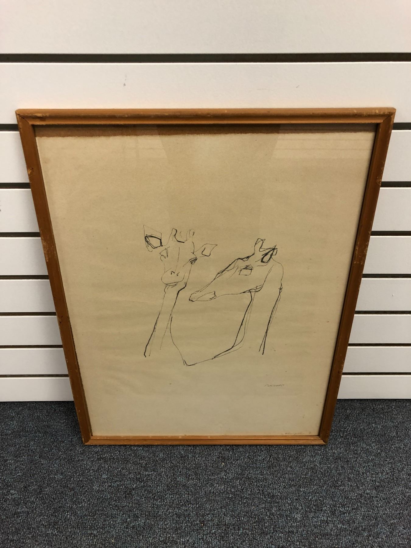Framed original charcoal pencil sketch drawing "Giraffe" signed by artist bottom right corner - approx. 15 1/2in x 21in (believed to be of Scandinavian origin)