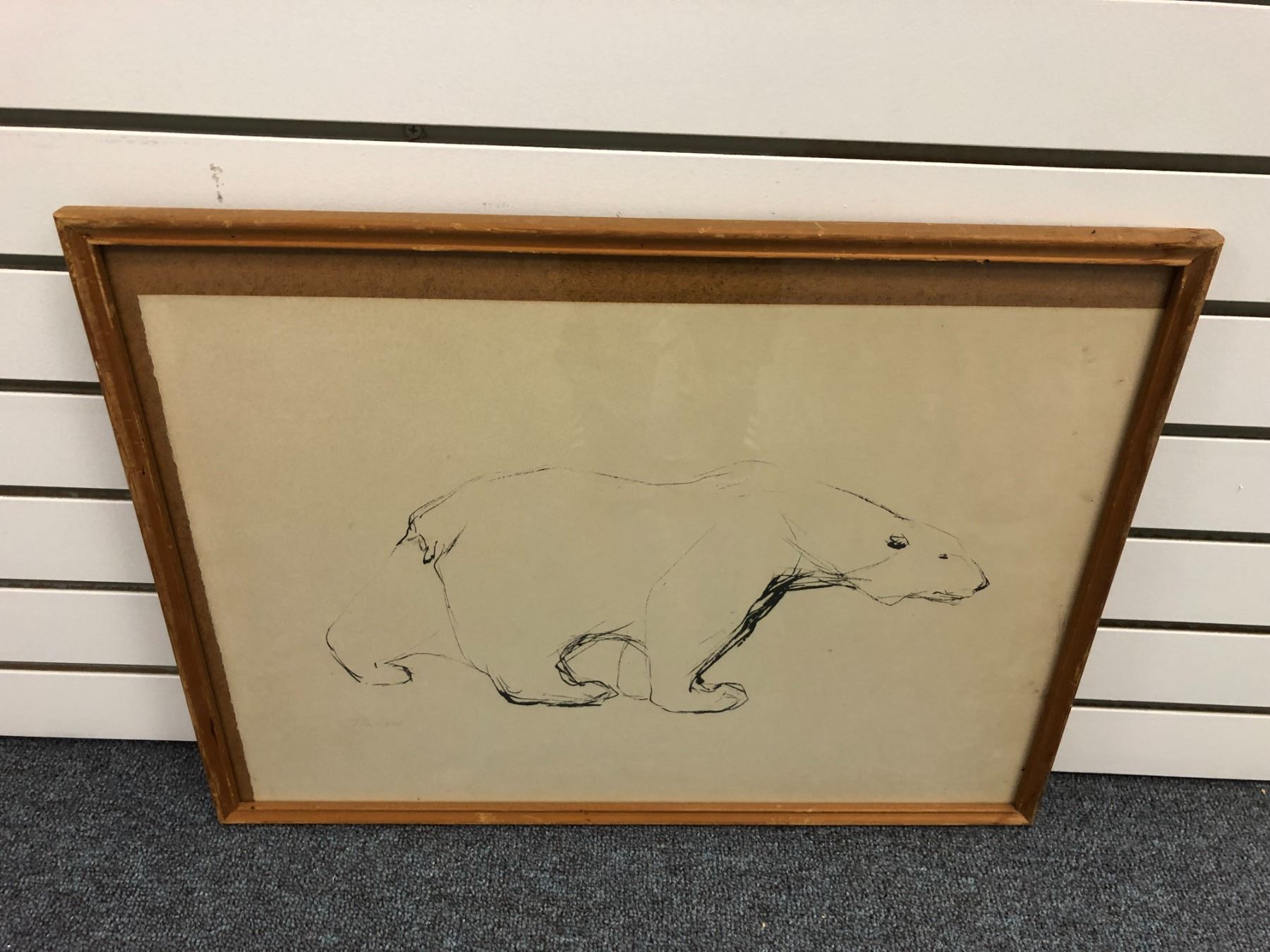 Framed original charcoal pencil sketch drawing "Polar Bear" signed by artist bottom left corner - approx. 20 1/2in x 14 1/2in (believed to be of Scandinavian origin)