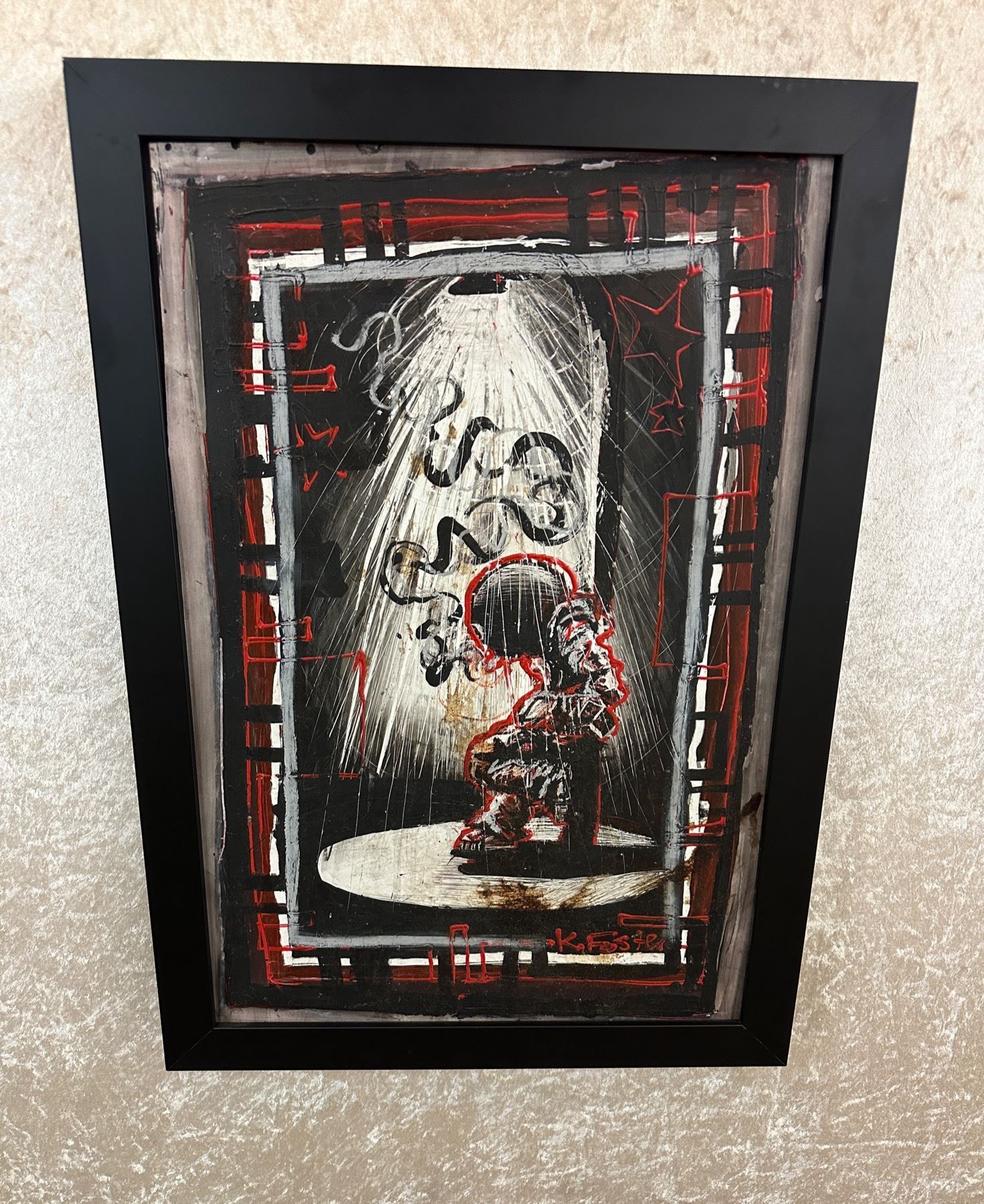 Framed original painting signed by artist K. Foster popular street artist - approx. 18 1/2in x 26 1/2in