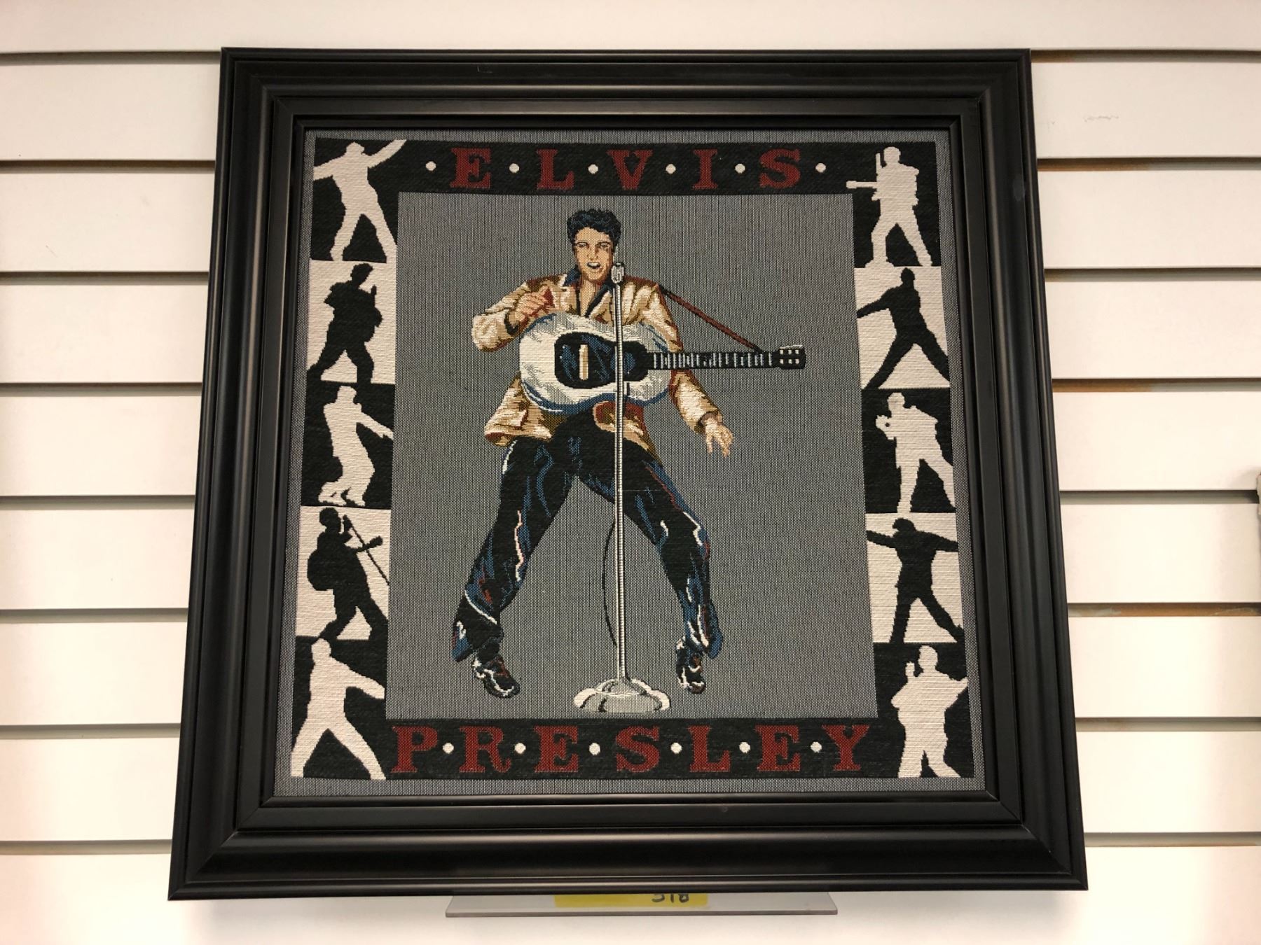 Framed petty point stitched Elvis Presley decorative wall hanging - approx. 21 1/2in x 22in