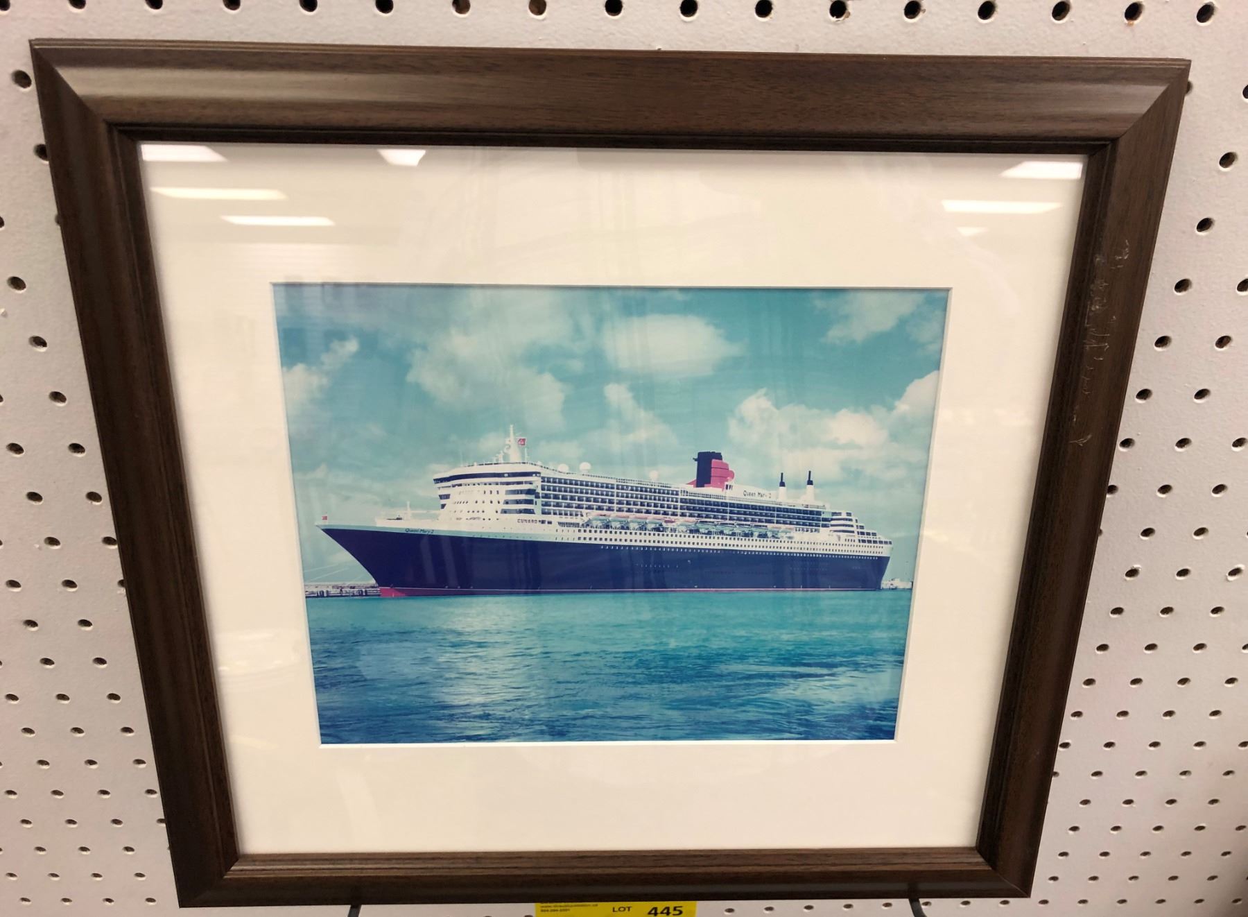 Framed photograph of the Queen Mary 2 cruise ship - approx. 9 1/2in x 8in