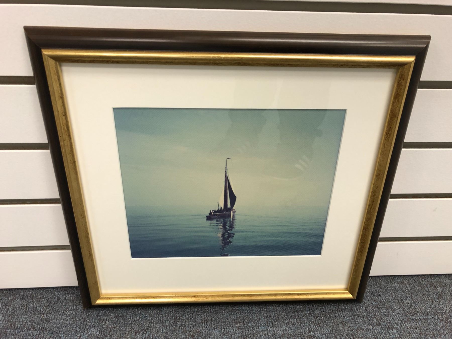 Framed sailboat photograph - approx. 9 1/2in x 8in