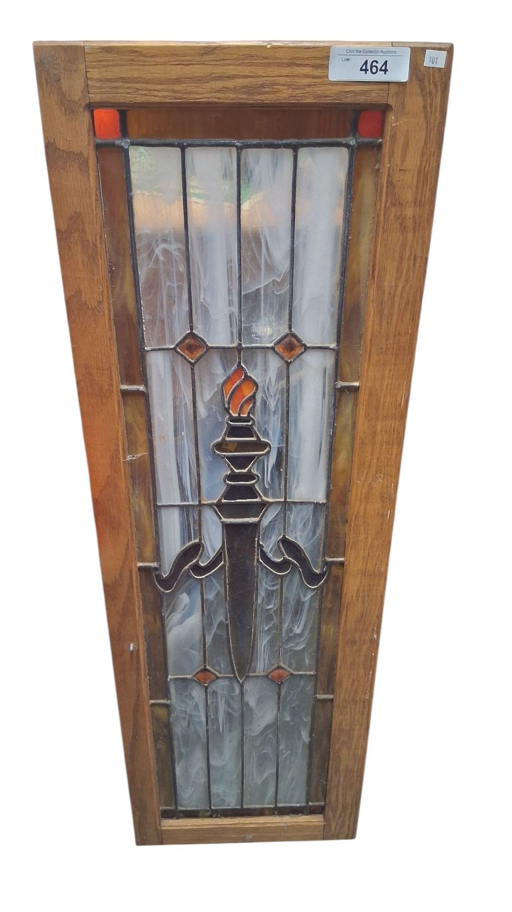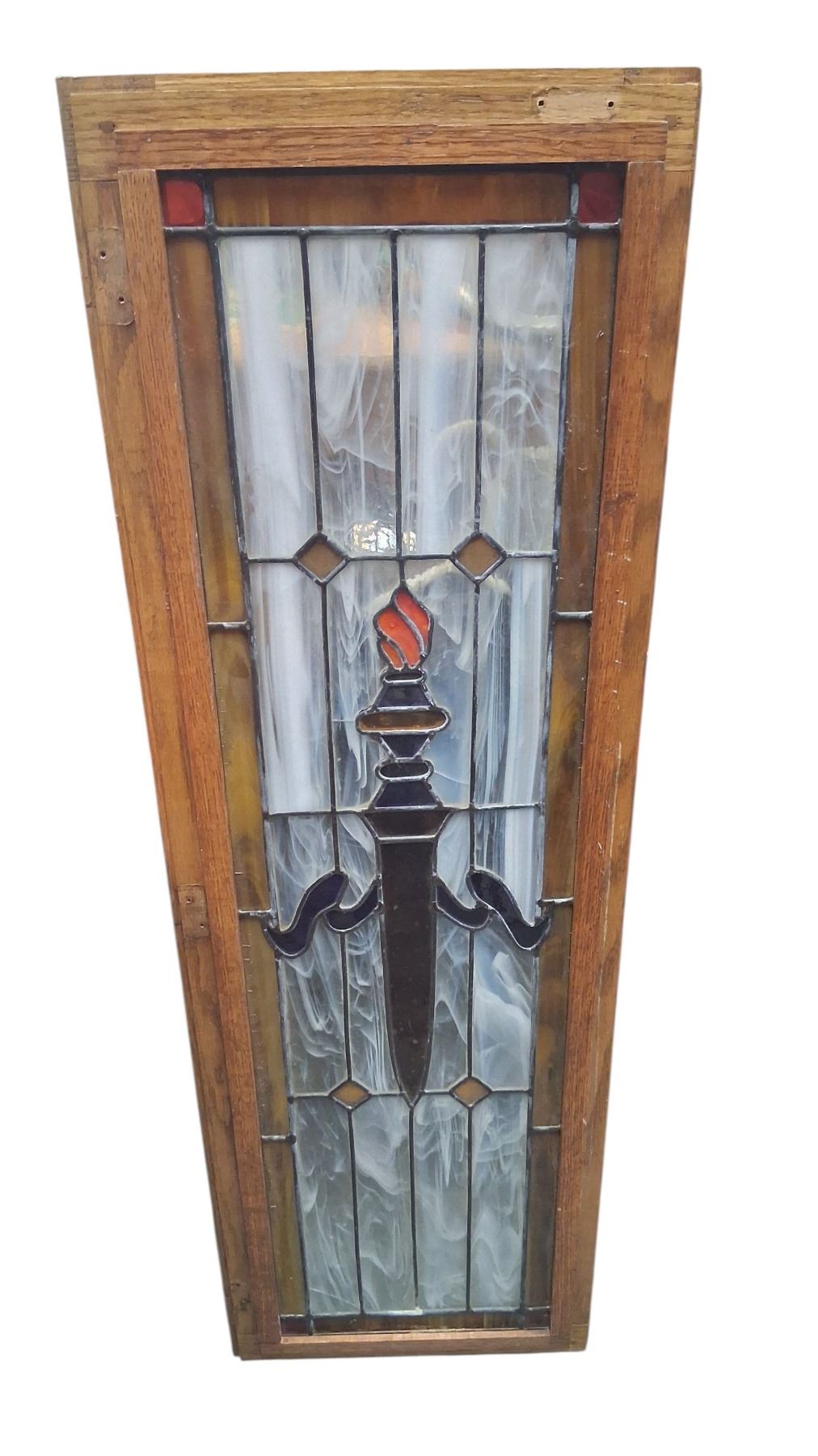 Framed stained glass window, slight cracks 43"x14"