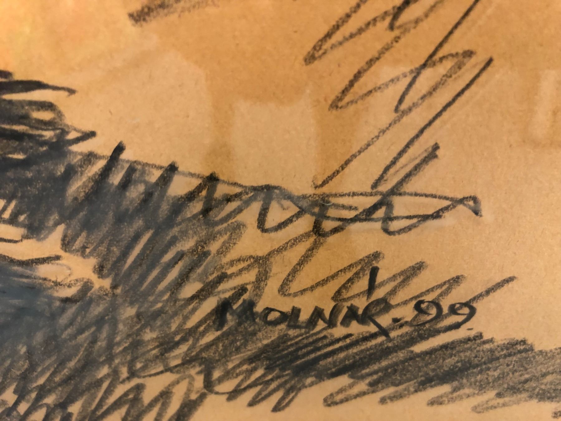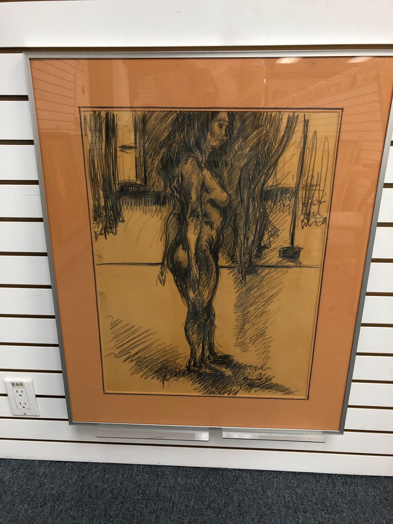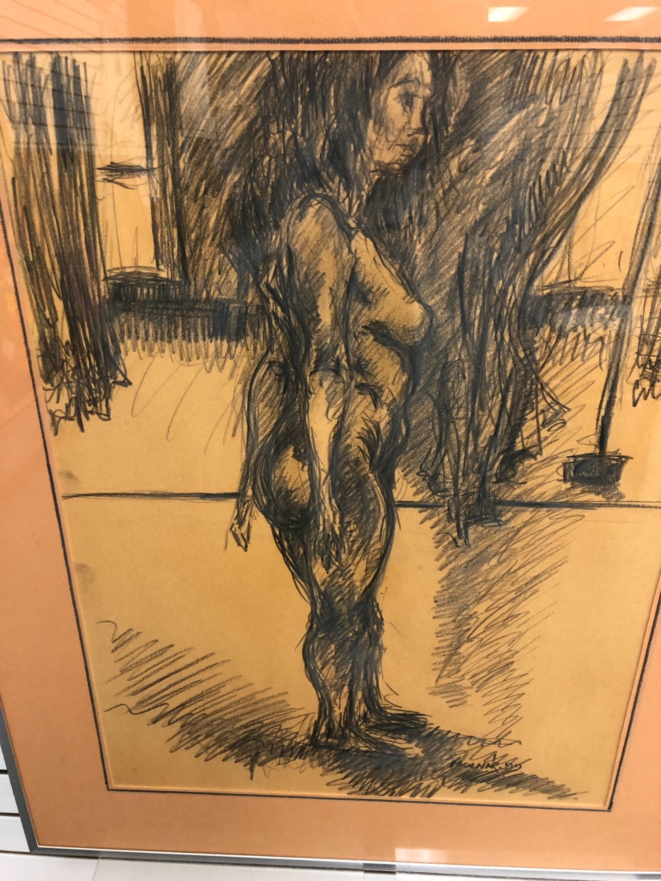 Frank Molnar Canadian (1936-2020) - Framed nude charcoal pencil sketch drawing 1999 - woman standing - approx. 17in x 24in (17)
