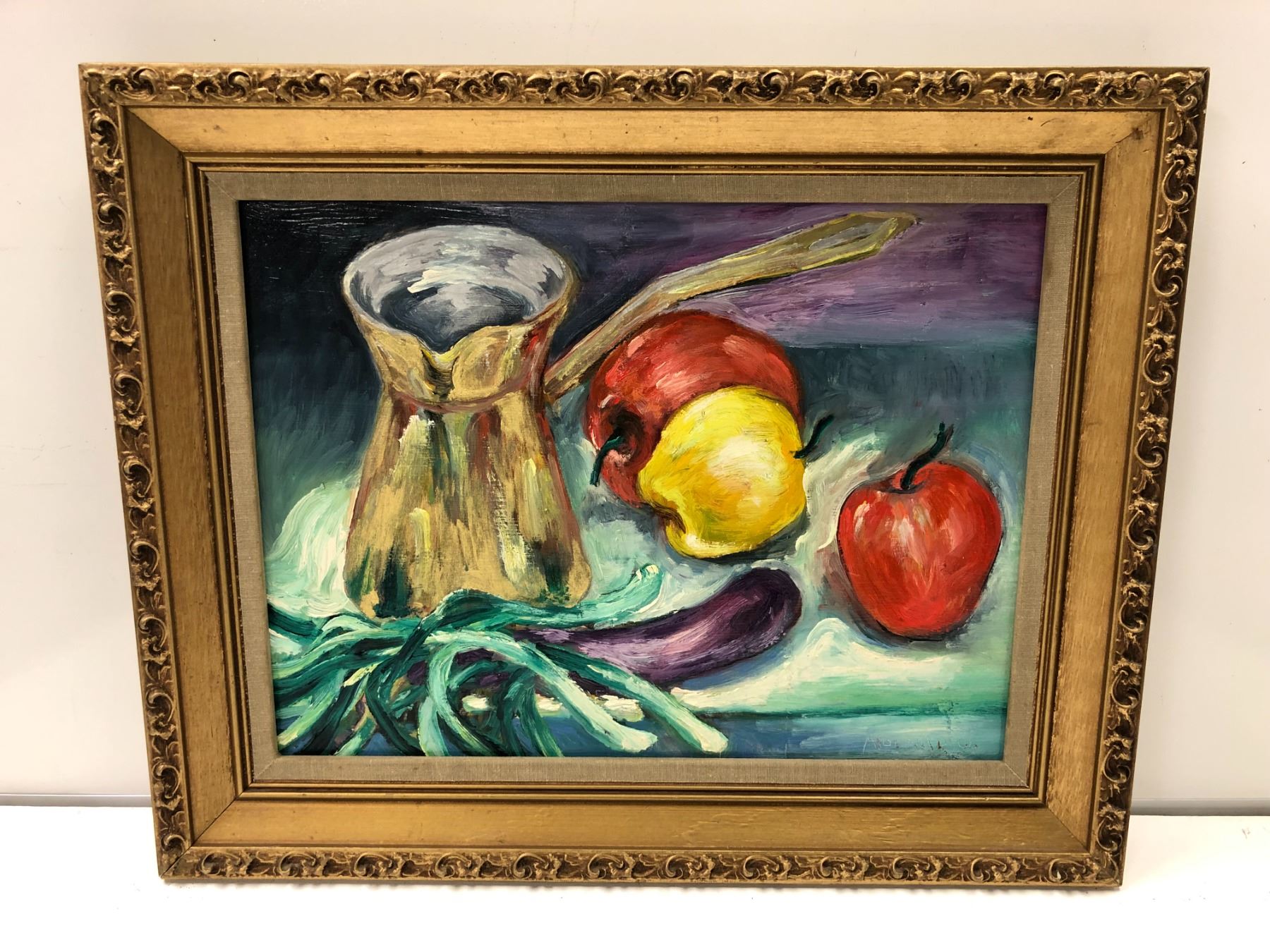 Frank Molnar oil on board framed still-life fruit painting 1999 - approx. 20in x 16in (63)