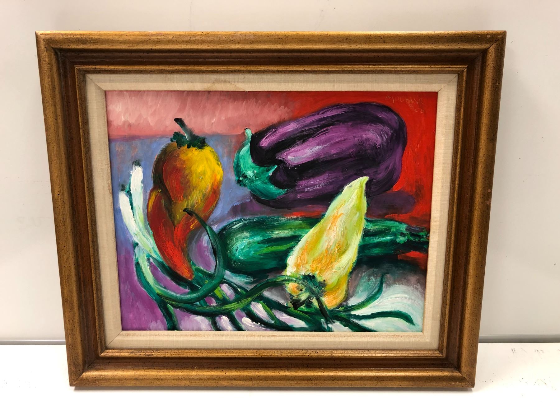 Frank Molnar oil on board framed still-life vegetable painting 2006 - approx. 18in x 15in (42)