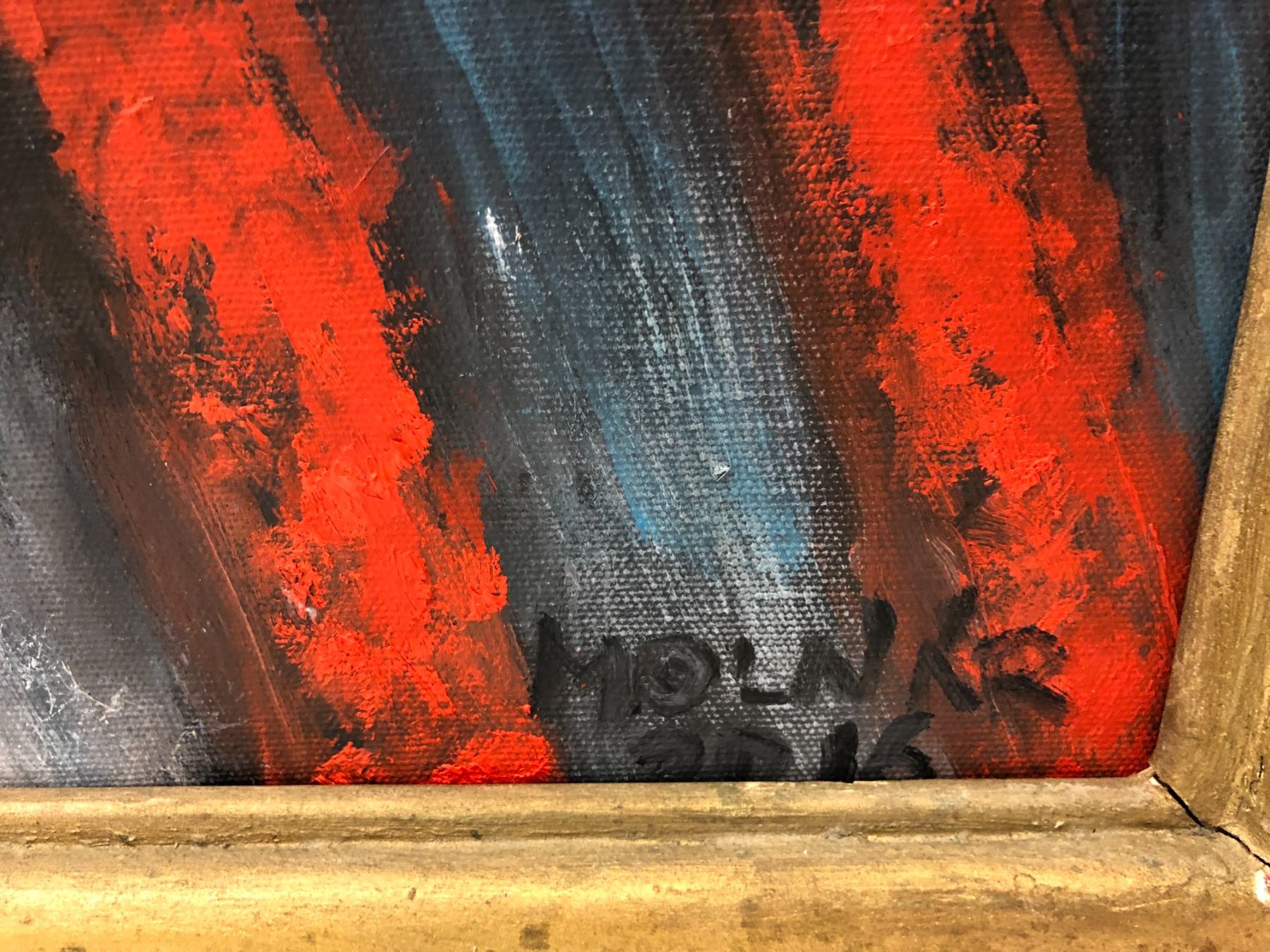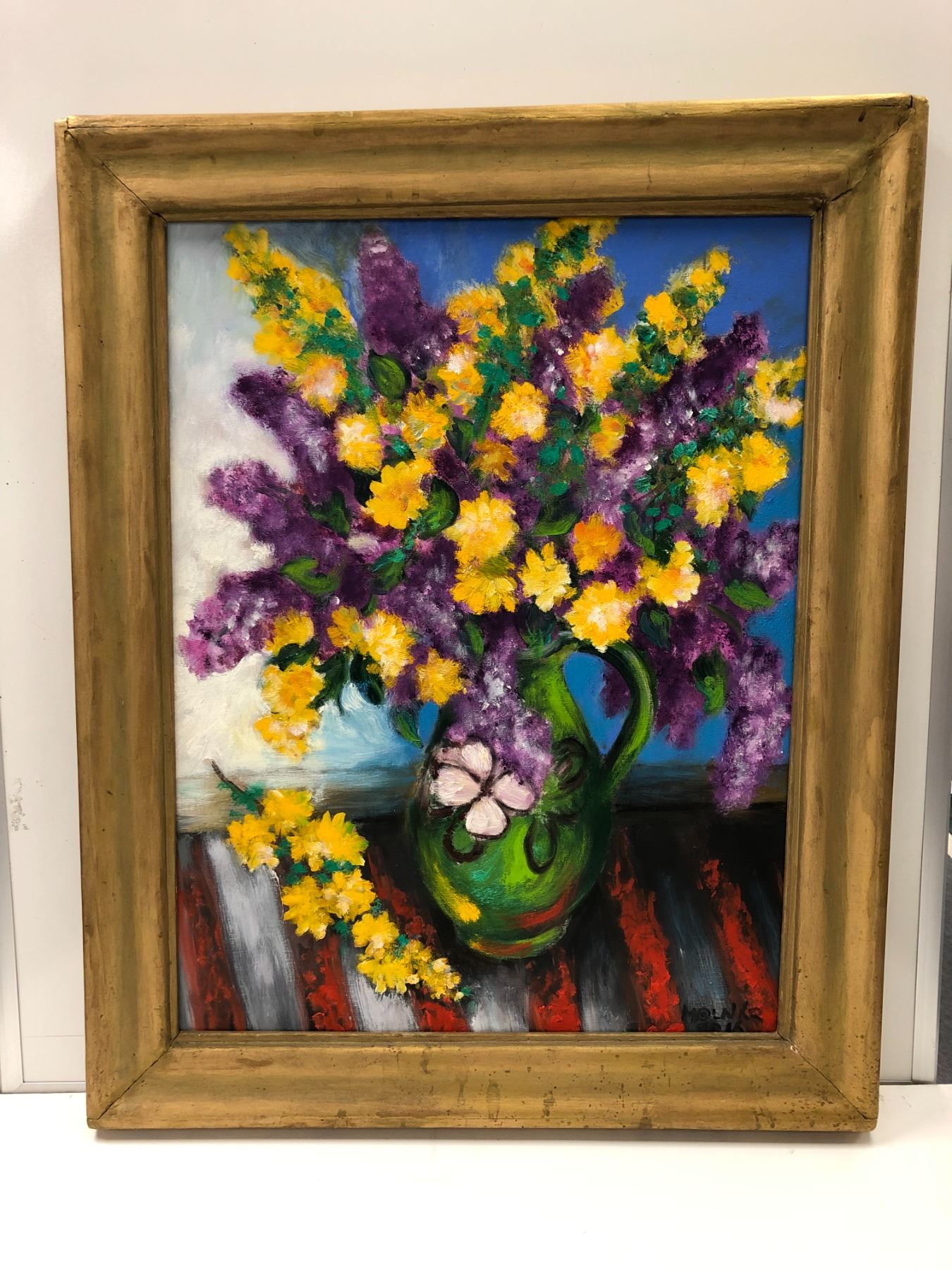 Frank Molnar oil on canvas framed still-life floral painting 2016- approx. 27in x 34in (64)