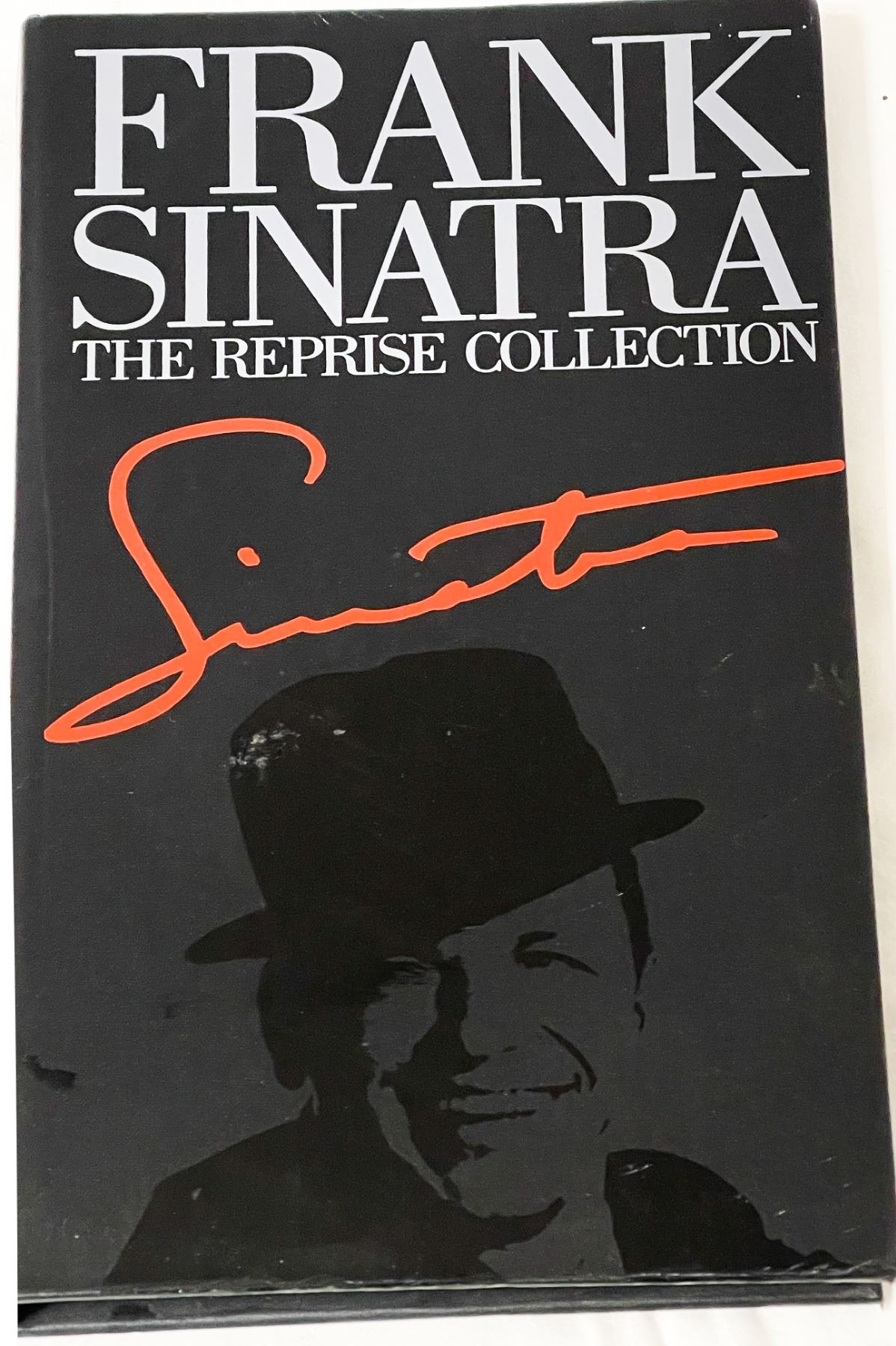 Original 1990 Frank Sinatra – The Reprise Collection 4-CD box set featuring over 80 tracks spanning Sinatra’s legendary Reprise years. Includes a bound booklet with photos and liner notes housed in a sleek black case with red signature and silhouette artwork. Case shows light surface wear and minor scuffing, while discs are in very good condition. A must-have for collectors and fans of classic crooners.