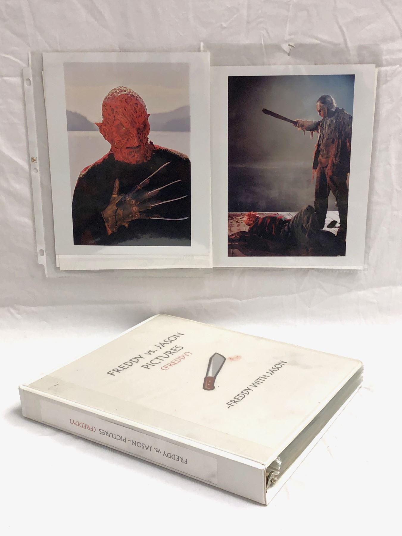 "Freddy vs Jason" Movie - Collectible Freddy onset photographs folder - includes multiple shots of Freddy in multiple poses, some with Jason