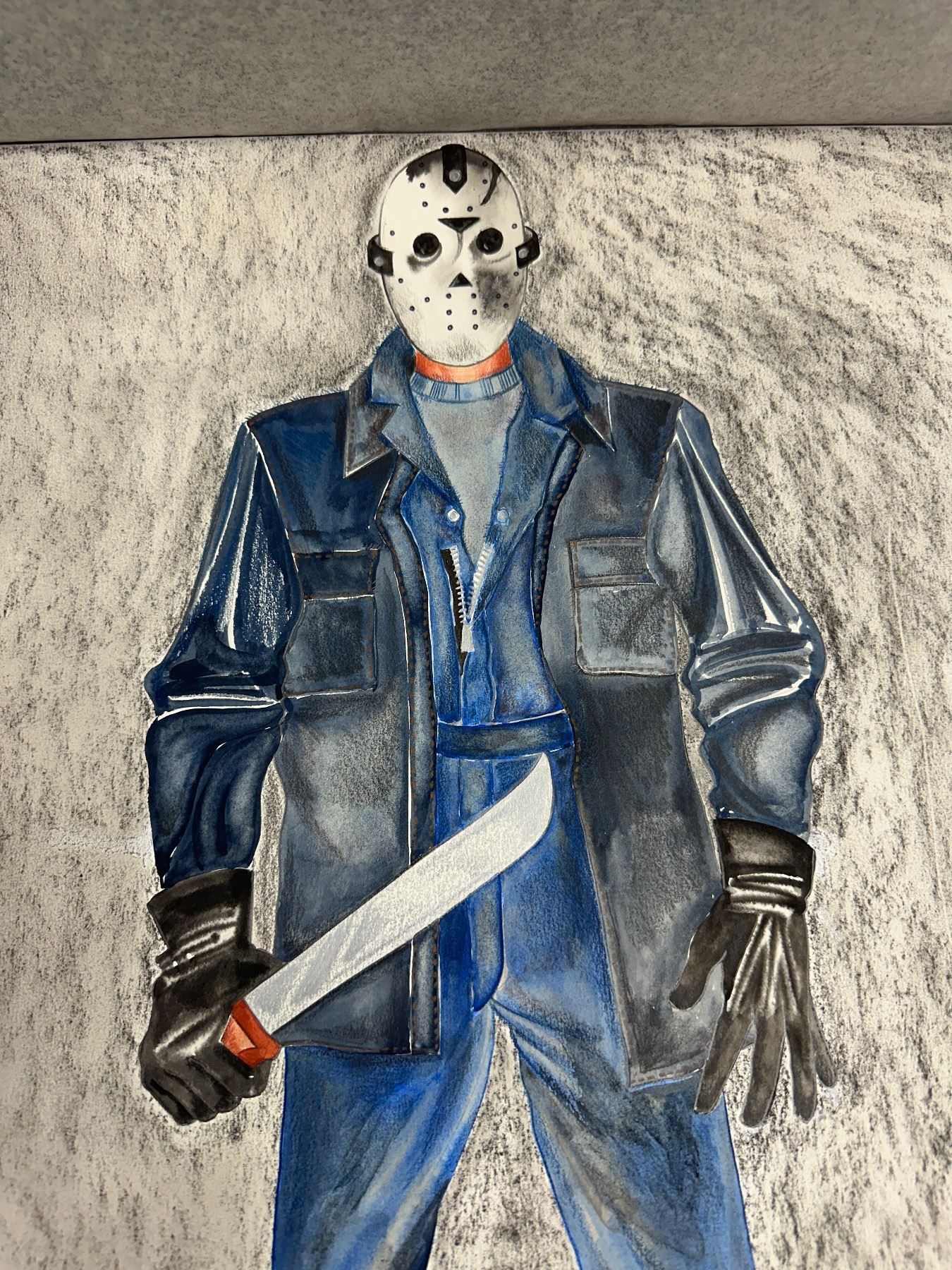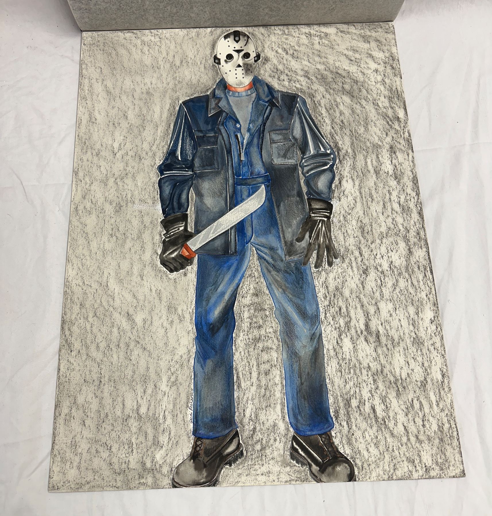 Freddy vs Jason  - Original Jason painting signed by artist Judi Pearson (approx. 15in x 20in)