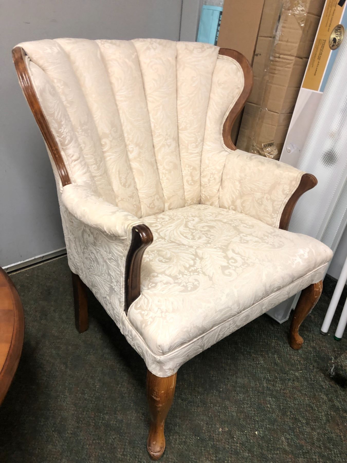 French Provincial scallop back upholstered armchair