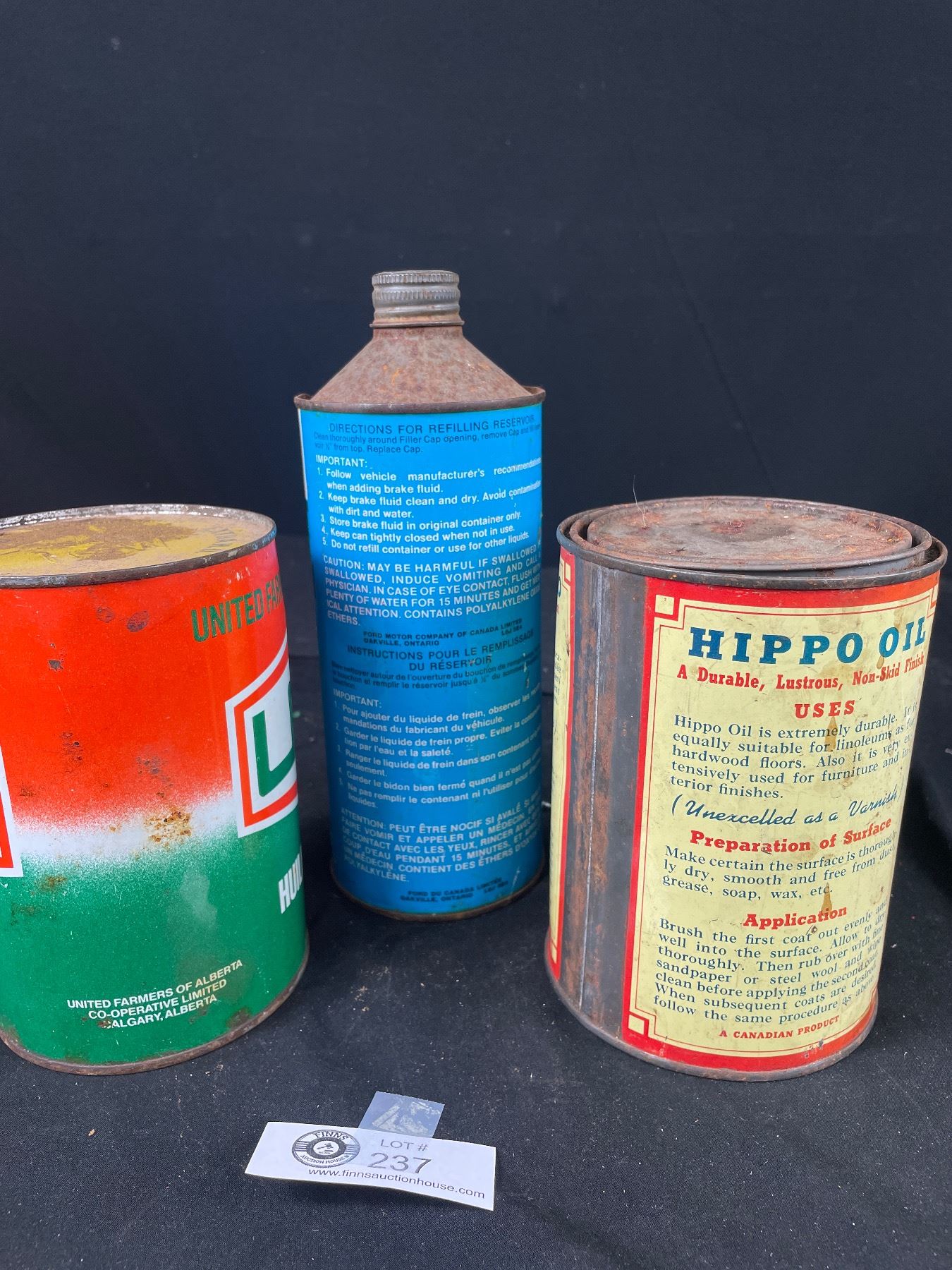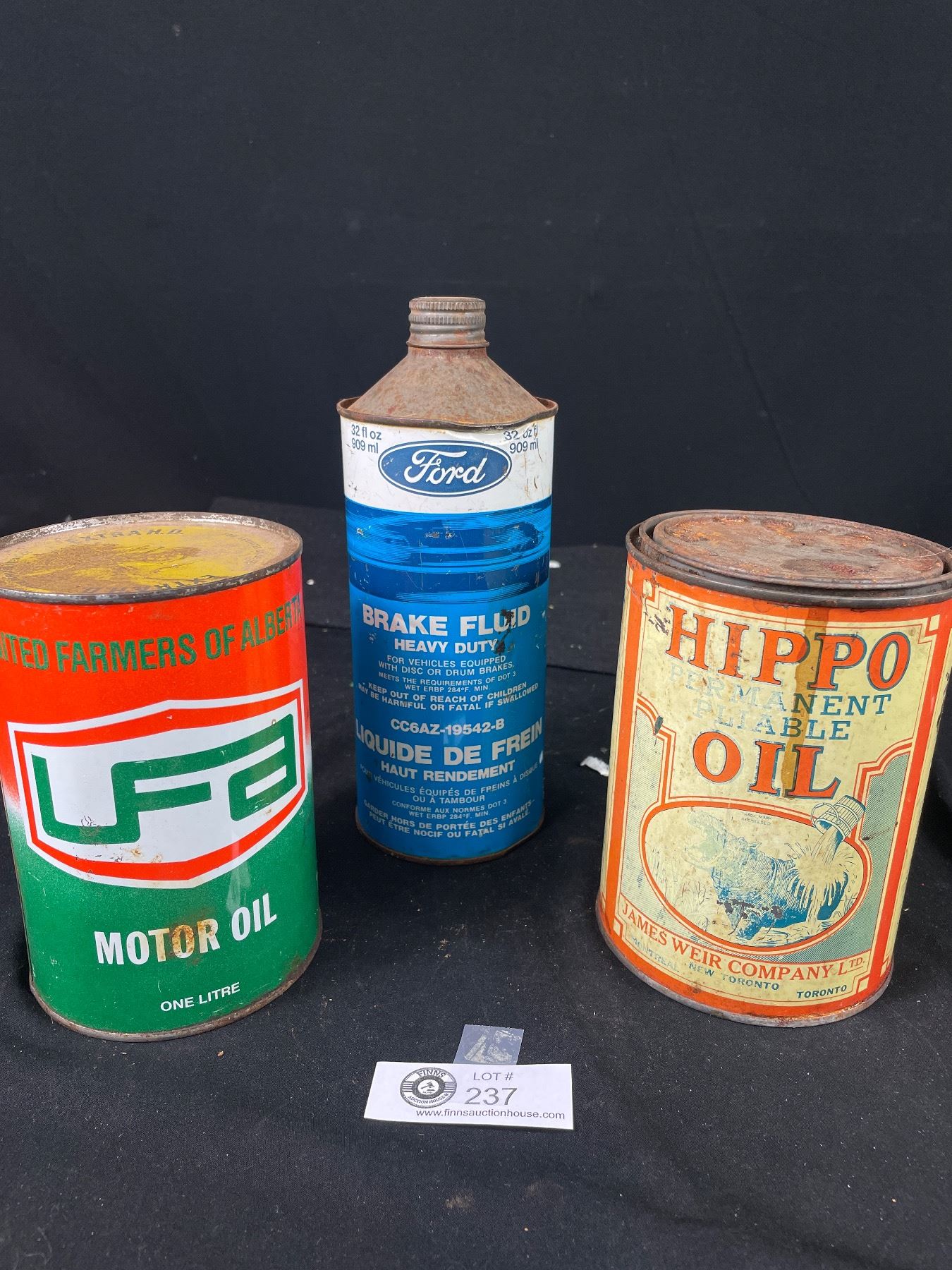 Full Ford Brake Fluid Tin, and Hippo Oil Can, Both Full