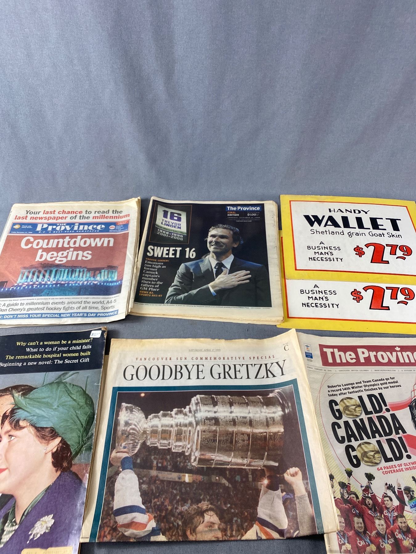 Full Vancouver Newspapers Of Hockey Events & Count Down To 2000, 1961 Chatelain Magazine & Handy Wallet Store Advertisement