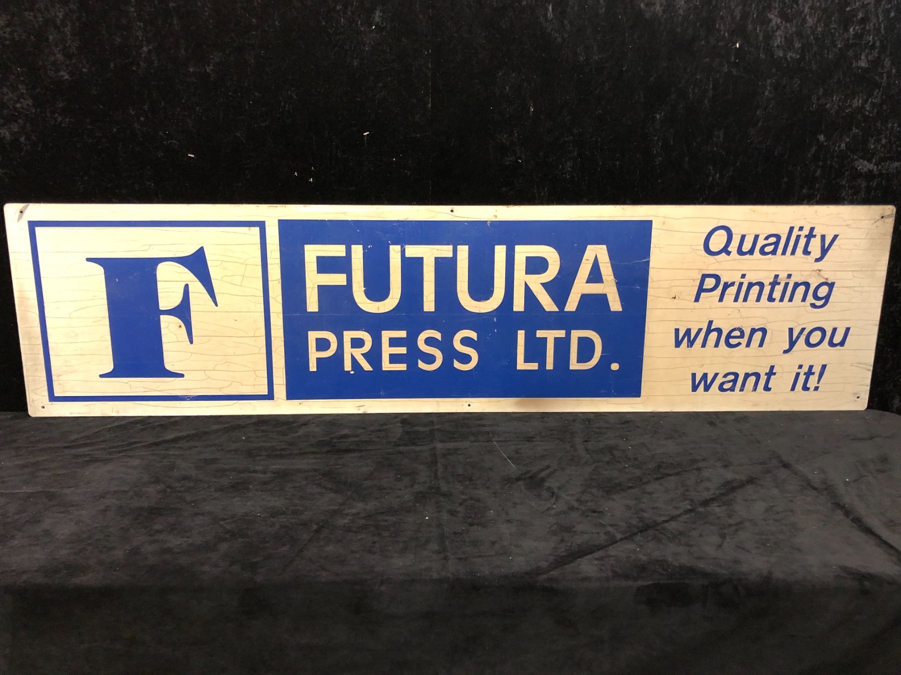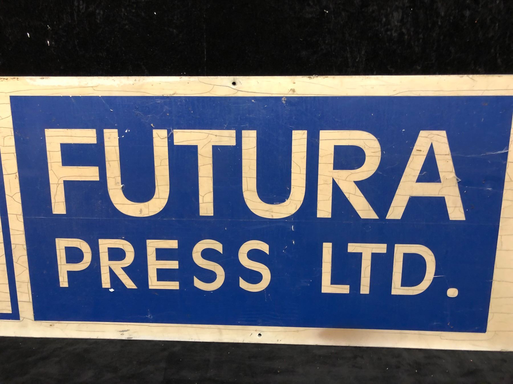 Futura Press Ltd. vintage metal advertisement sign 85in x 21in