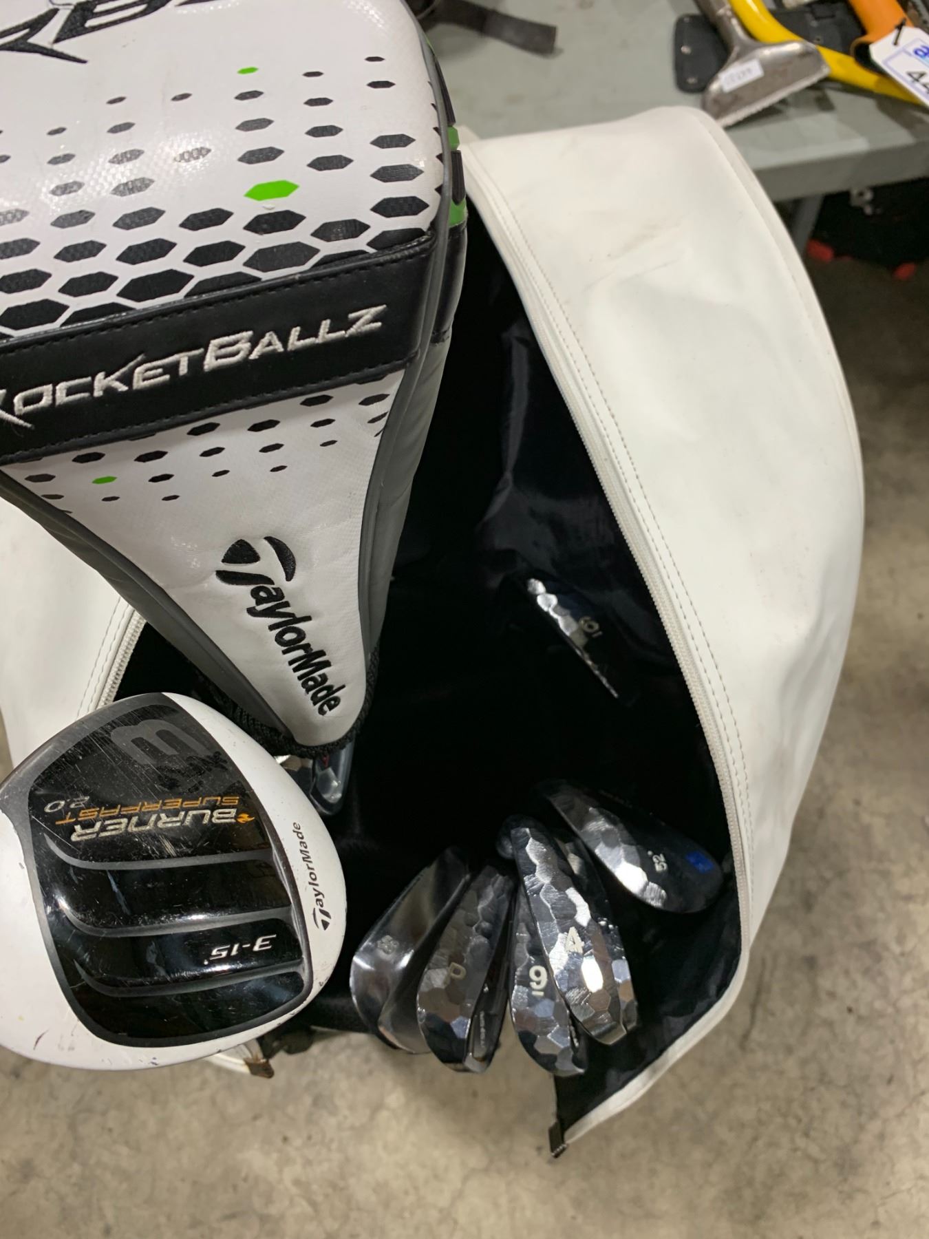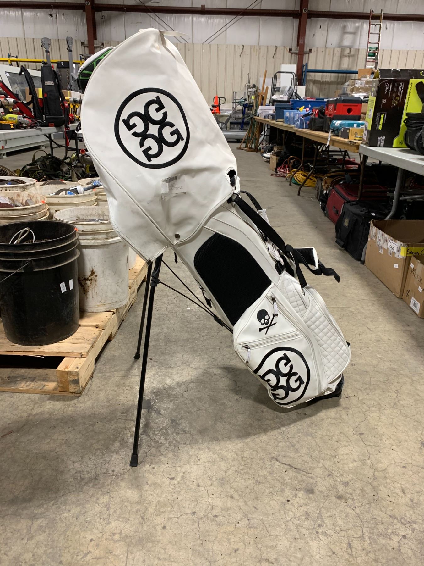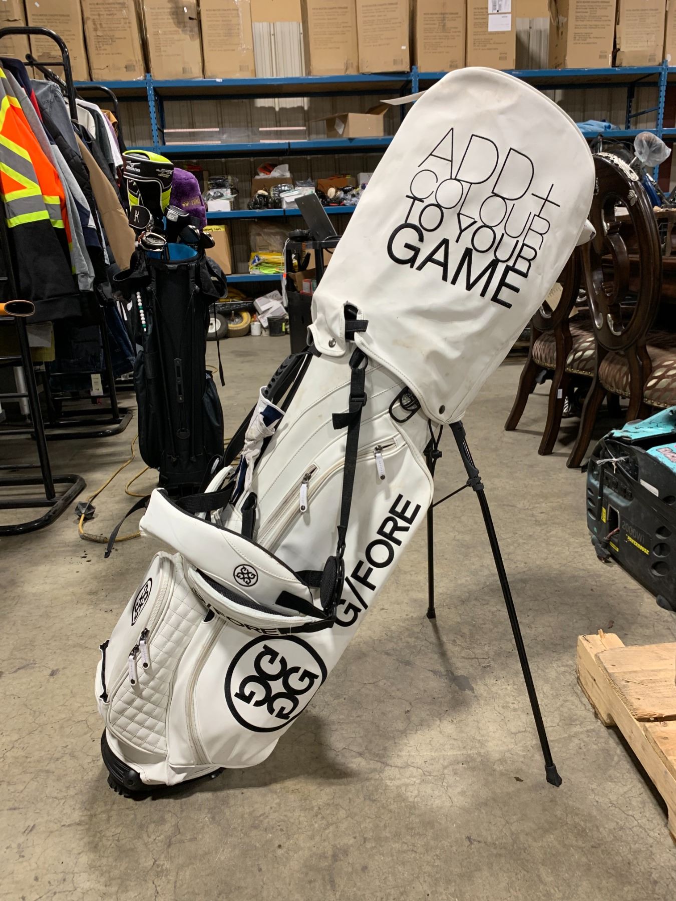 G/FORE VESSEL GOLF BAG WITH ASSORTMENT OF APPROX 11 GOLF CLUBS