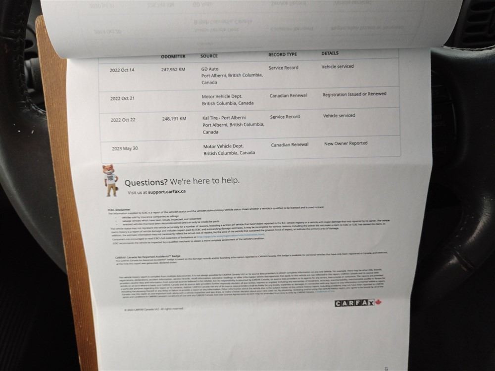 Automatic transmission and TRITON 4.6 Litre Engine, 8 cylinder , Rear Wheel Drive, 254311 KilometersWhite, 6 PassengerDeclarations -Previous Out of Province, ONT , Currently BC Registered, No Reported Accidents,Power Steering, Power Brakes, , Intermittent Wipers, AM/FM Stereo , Rear Defroster, Bucket Seats, Anti Lock Brakes, Front Disc Brakes-Air Conditioning, Power Windows, Power Locks, Keyless Entry, Tilt Steering, Cruise Control, Alloy Wheels, Anti Theft, Power Adjustable Pedals, Box Liner, Running BoardsAuction Notes : CarFax Shows Good Service History (26 Records), Carfax Shows: Spark Plugs Replaced @239353kms, Fuel Pump Module Replaced @243219kms, Alternator Replaced Aug 2022, Rear Calipers, Rotors + Pads Replaced @247952, Brakes Front 70 % Rear 70 %
