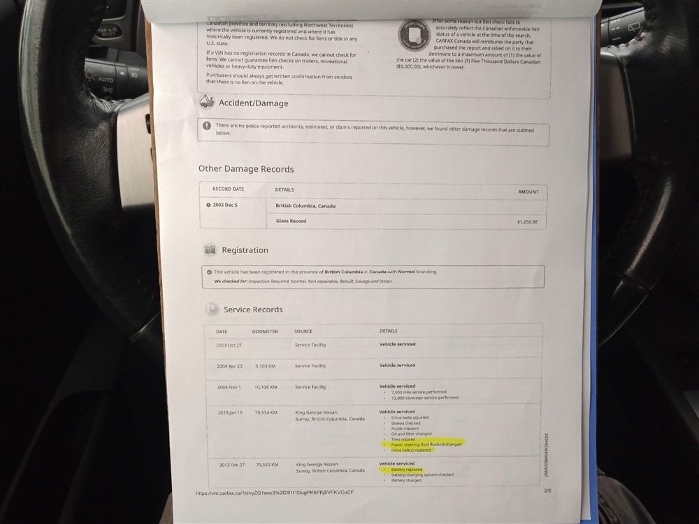 Automatic transmission and 3.5 Litre Engine, 6 Cylinder, All Wheel Drive, 146,771 KMSSilver, 5 PassengerNo Declarations - BC Vehicle, No Accidents over $2000, No Reported Accidents,Power Steering, Power Brakes, Intermittent Wipers, AM/FM Stereo , Rear Defroster, Bucket Seats, Anti Lock Brakes, Front Disc Brakes-Air Conditioning, Power Windows, Power Locks, Keyless Entry, Tilt Steering, Cruise Control, Alloy Wheels, Anti Theft, Power Sunroof, CD Player, Leather Seats, Power Seats, Heated Seats, Memory Seats, Information Center, Traction Control, Steering Wheel Controls, Fog Lights, Roof Rack, Tow Package, Spare Key, Power Mirrors Auction Notes : Dual Exhaust, Spare Key