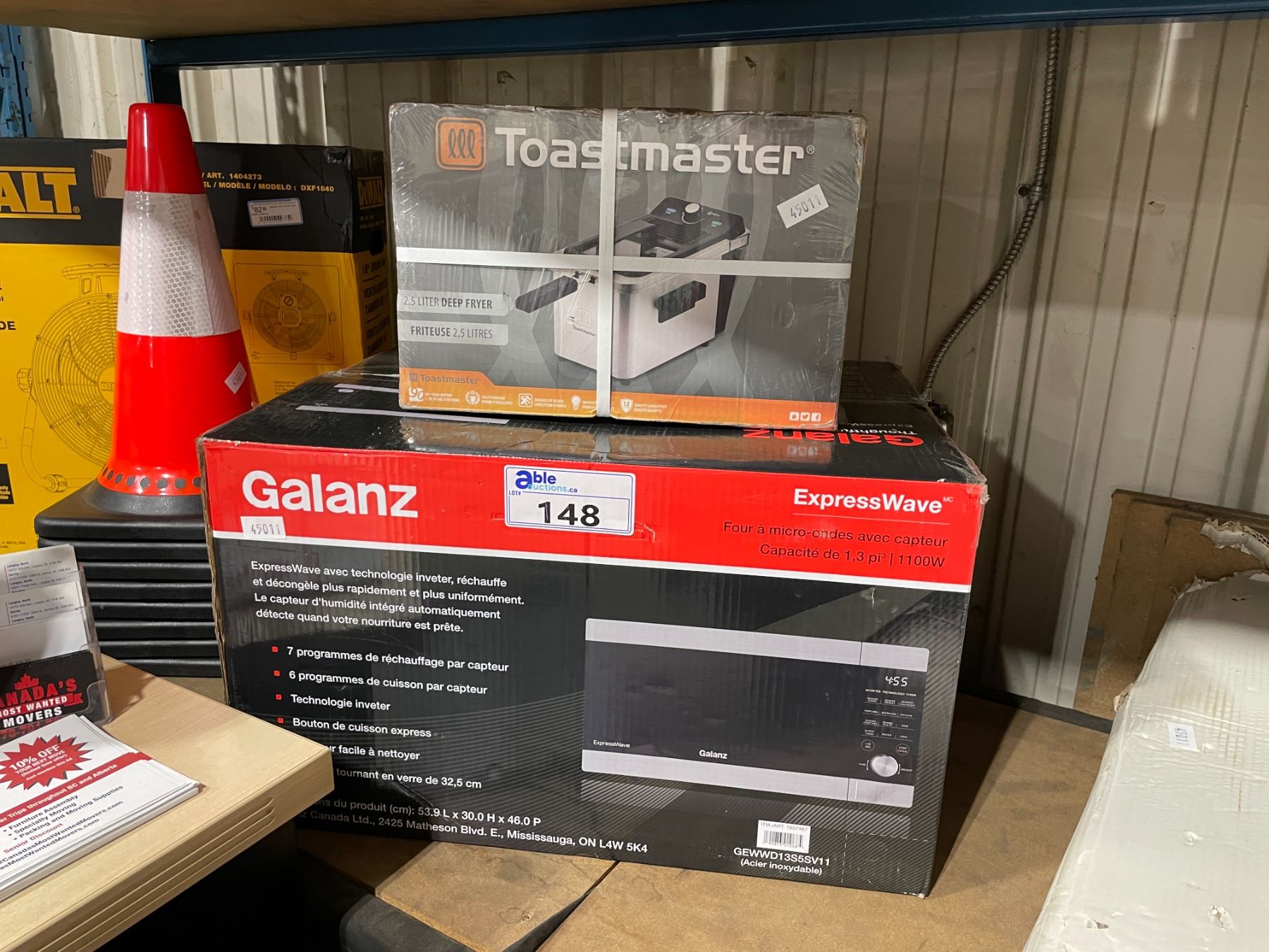 GALANZ EXPRESSWAVE STAINLESS STEEL COUNTER TOP MICROWAVE OVEN, & TOASTMASTER 2.5L DEEP FRYER *BOTH IN BOX*