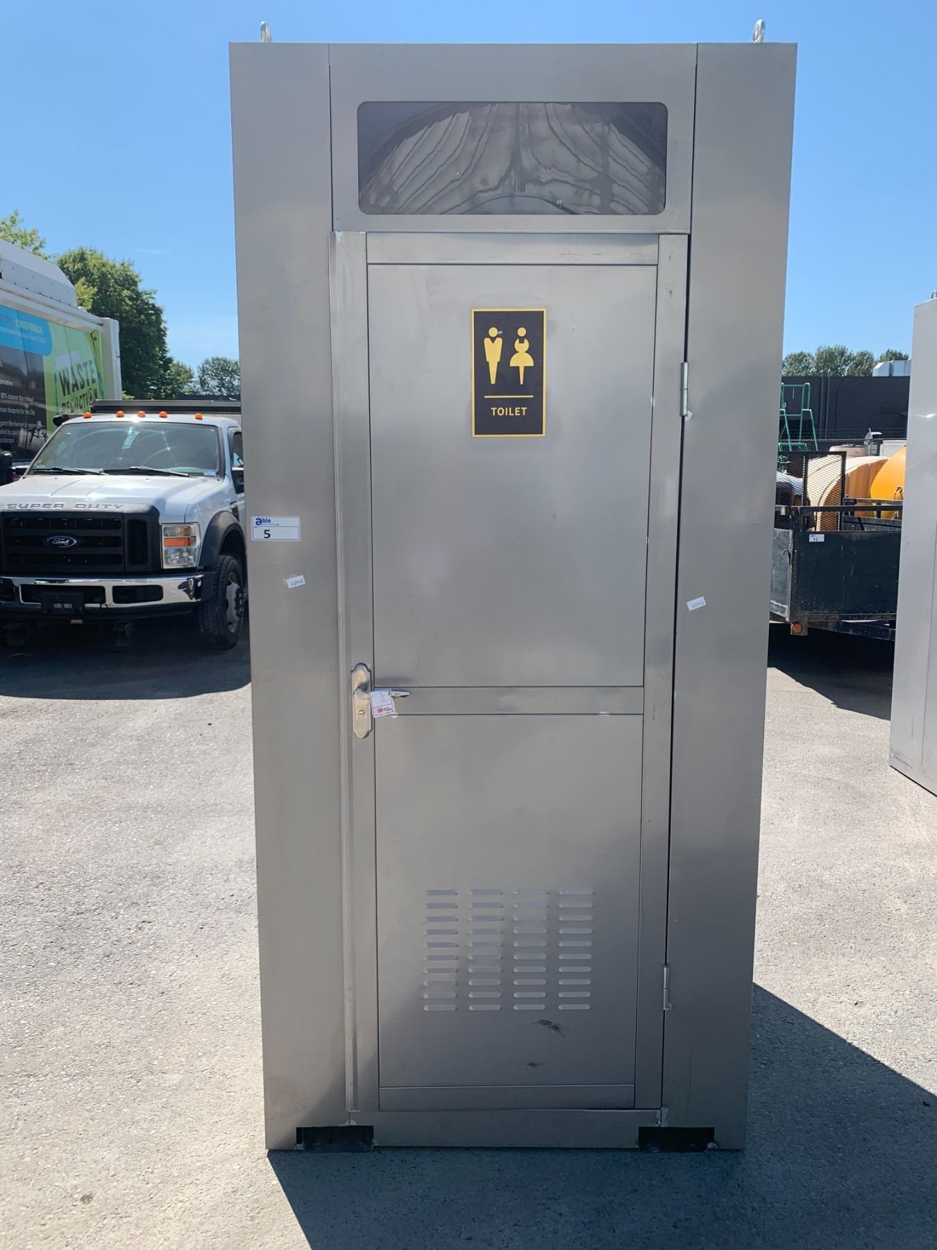 GALVANIZED METAL PORTABLE WASHROOM WITH TOILET, SINK, FAN & LIGHTING