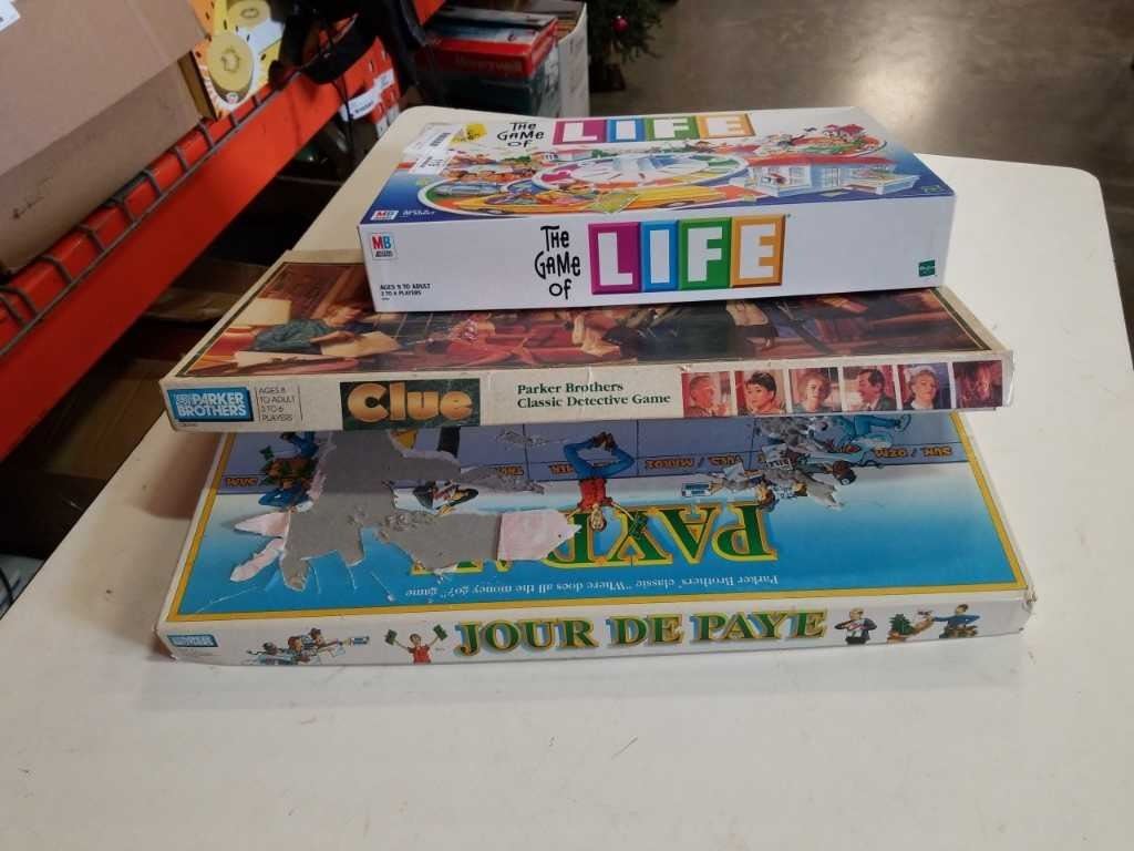 GAME OF LIFE, CLUE AND PAYDAY BOARD GAMES