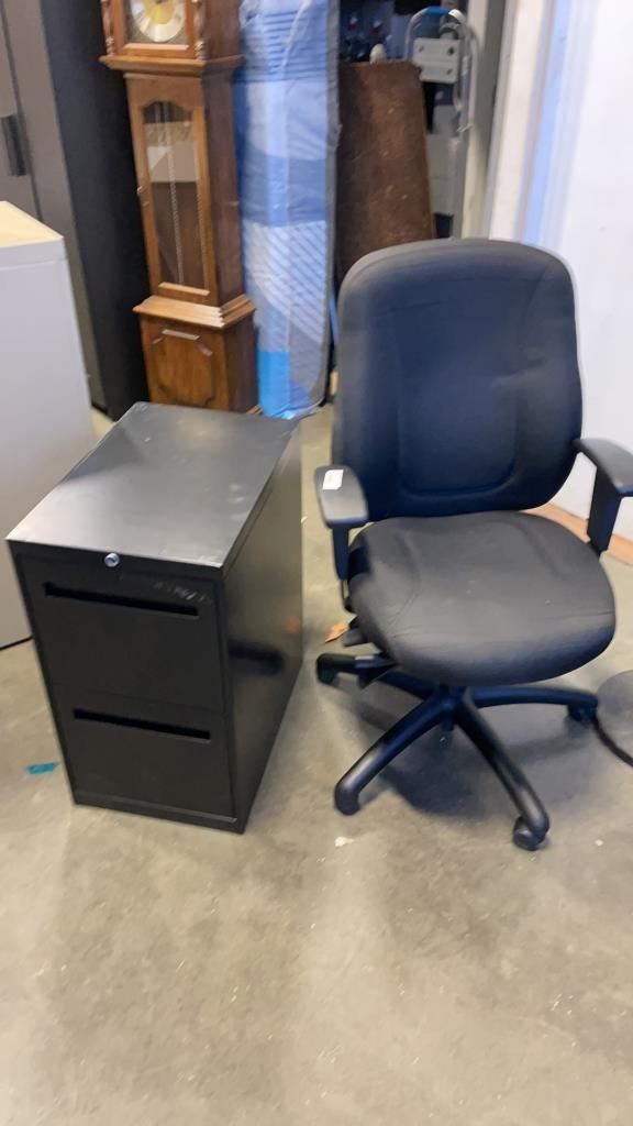 GAS LIFT OFFICE CHAIR AND 2 DRAWER FILING CABINET