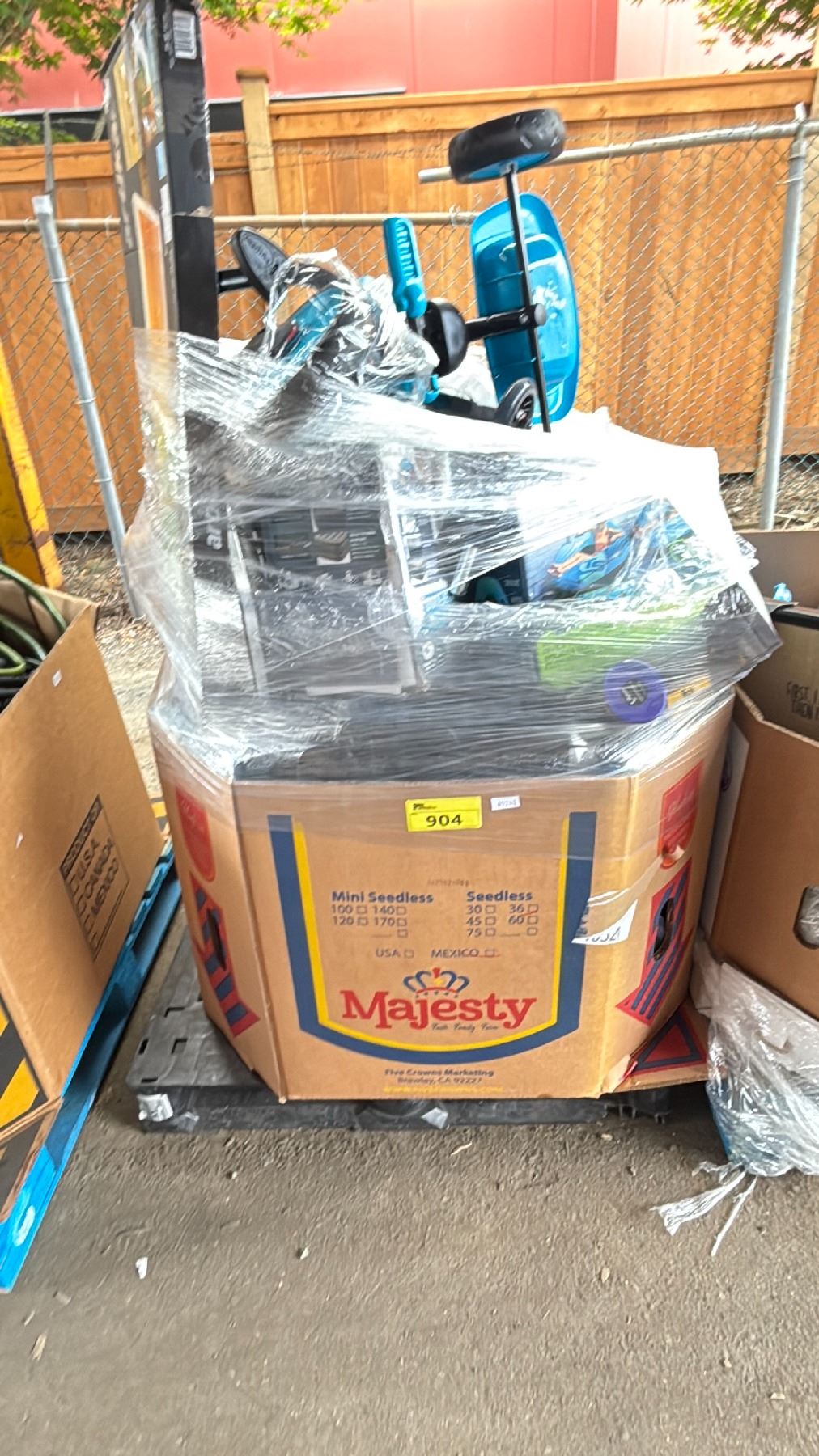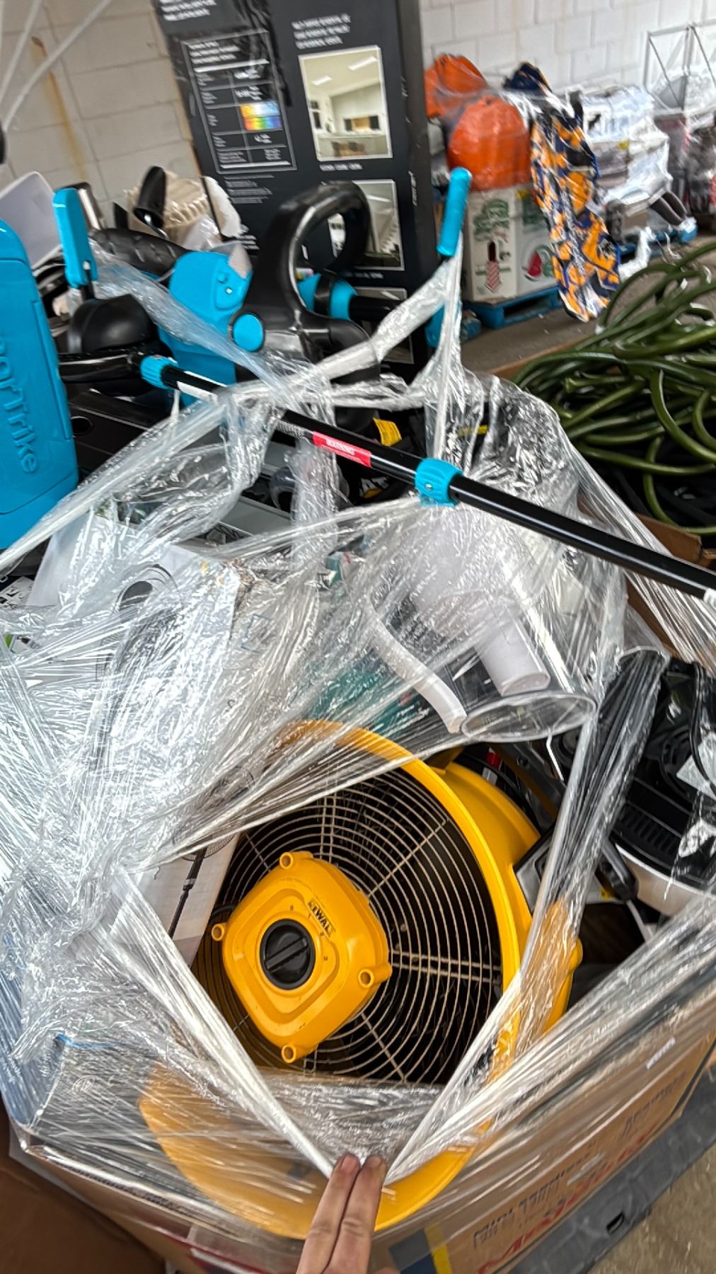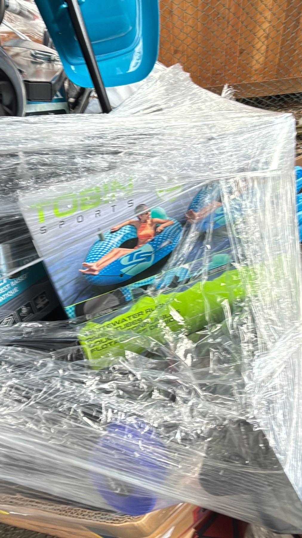 GAYLORD OF ASSORTED ITEMS INCLUDING; ARTIKA SKYSHADE LIGHT, INFLATABLE TUBES, DYSON VACUUM & MORE (UNKNOWN WORKING CONDITION, MAY BE MISSING PARTS & PIECES)
