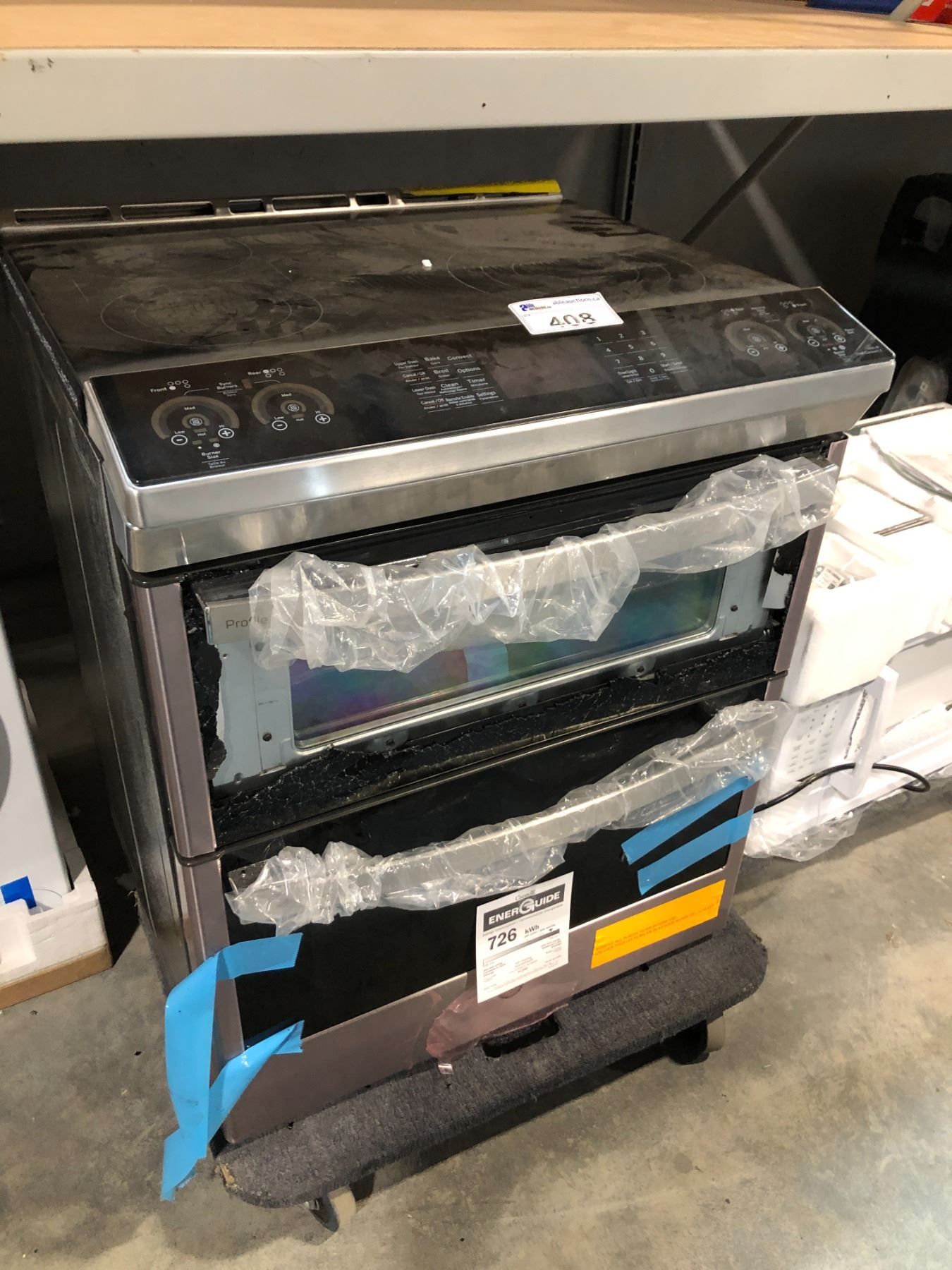 GE STAINLESS STEEL 5 BURNER INDUCTION RANGE WITH WIFI MODEL PCS980 FOR PARTS OR REPAIR 30" X 29" X 37"