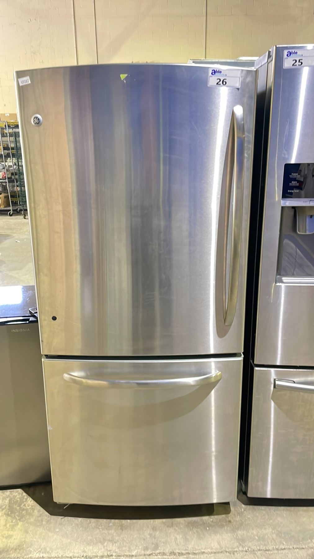 GE STAINLESS STEEL FRIDGE WITH PULL OUT FREEZER