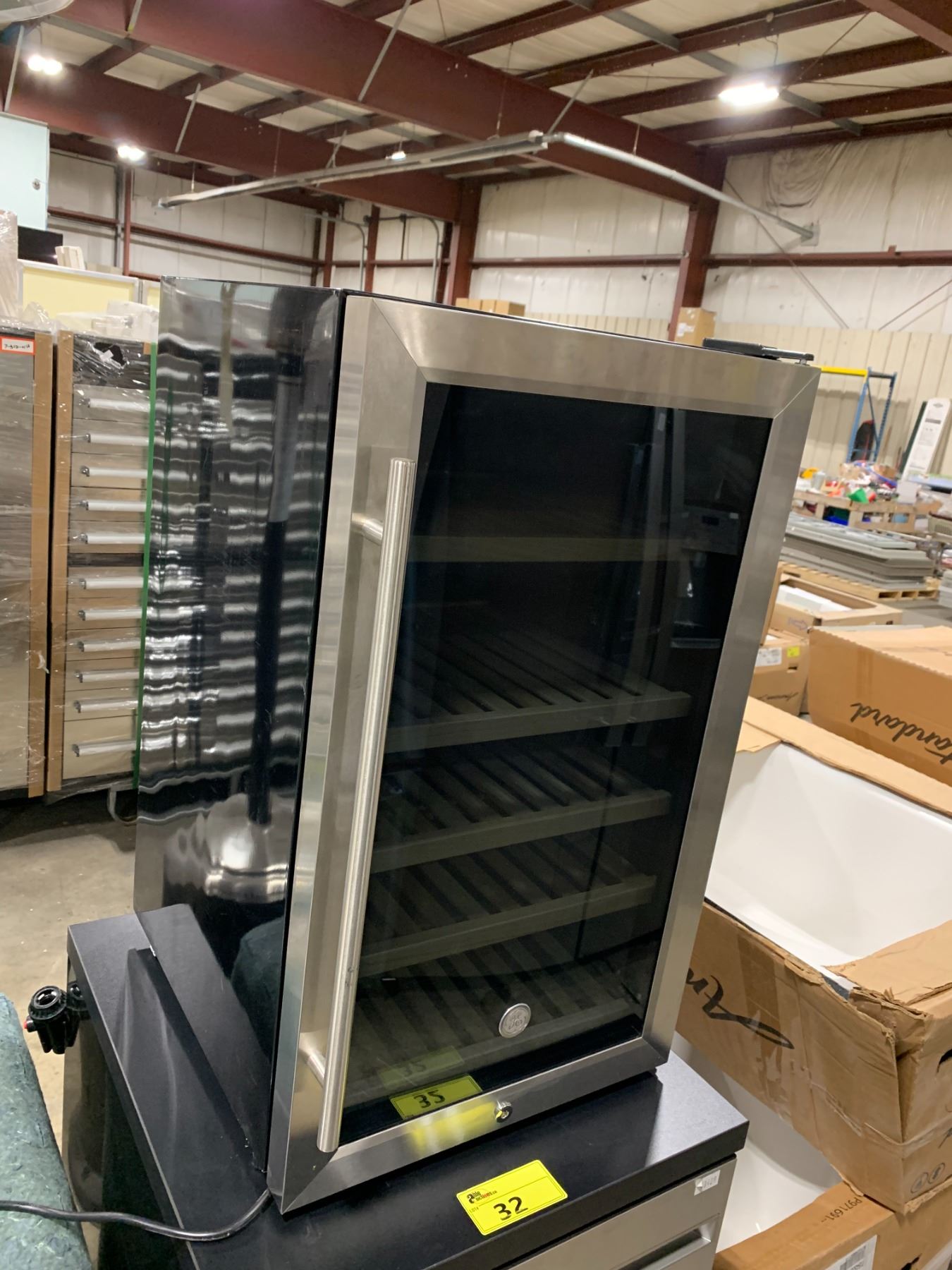 GENERAL ELECTRIC GVS04BQNCSS STAINLESS STEEL / BLACK SINGLE DOOR GLASS FRONT ELECTRIC WINE CELLAR 19"W X 21"D X 33"H SER #DT005454