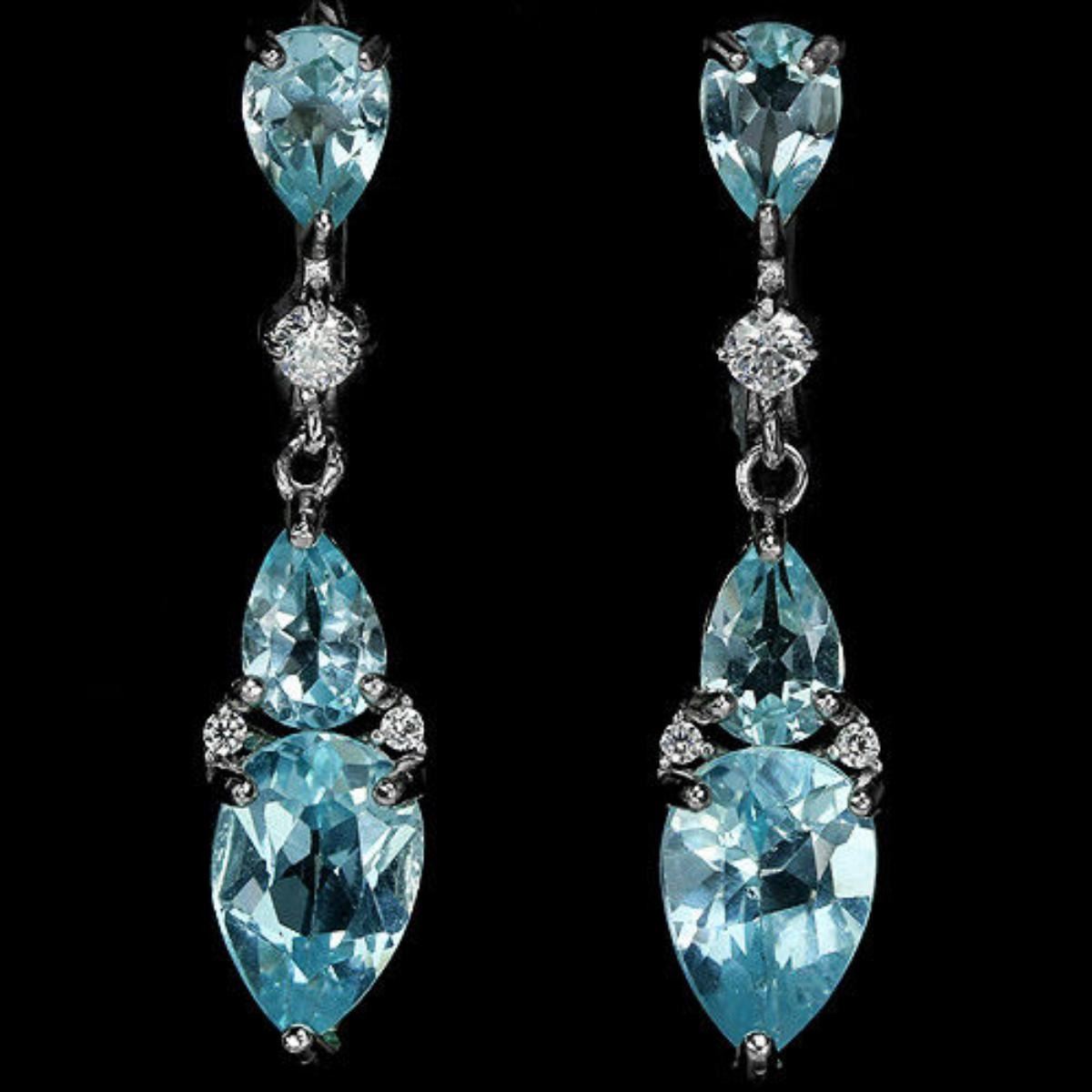 GENUINE AAA SKY BLUE TOPAZ & WHITE CZ 925 SILVER EARRING 14K WHITE GOLD COATING; STONE SHAPEPEAR PORTUGUESE CUTSTONE DIMENSION8 X 6 MM. & 6 X 4 MM.ITEM WEIGHT3.93 GRAMCOLORAAA SKY BLUECLARITYIF, VVS - VSLUSTERWINSOMETREATMENTIRRADIATIONORIGIN OF STONEAFRICAHARDNESS8.0FACE OF EARRING 30 X 6 MM. WHITE CUBIC ZIRCONIA 2.5 MM.
