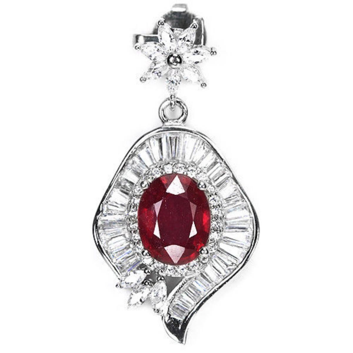 GENUINE BLOOD RED RUBY & WHITE CZ 925 SILVER PENDANT 14K WHITE GOLD COATING; STONE SHAPEOVALSTONE DIMENSION7 X 5 MM.ITEM WEIGHT4.01 GRAMCOLORBLOOD REDCLARITYTRANSLUCENTLUSTERDAZZLINGTREATMENTHEATEDORIGIN OF STONEAFRICAHARDNESS9OTHERFACE OF PENDANT 32 X 16 MM. WHITE CUBIC ZIRCONIA 3 X 1.5 MM. , 3 X 1.5 MM. & 2.5 X 1.5 MM.
