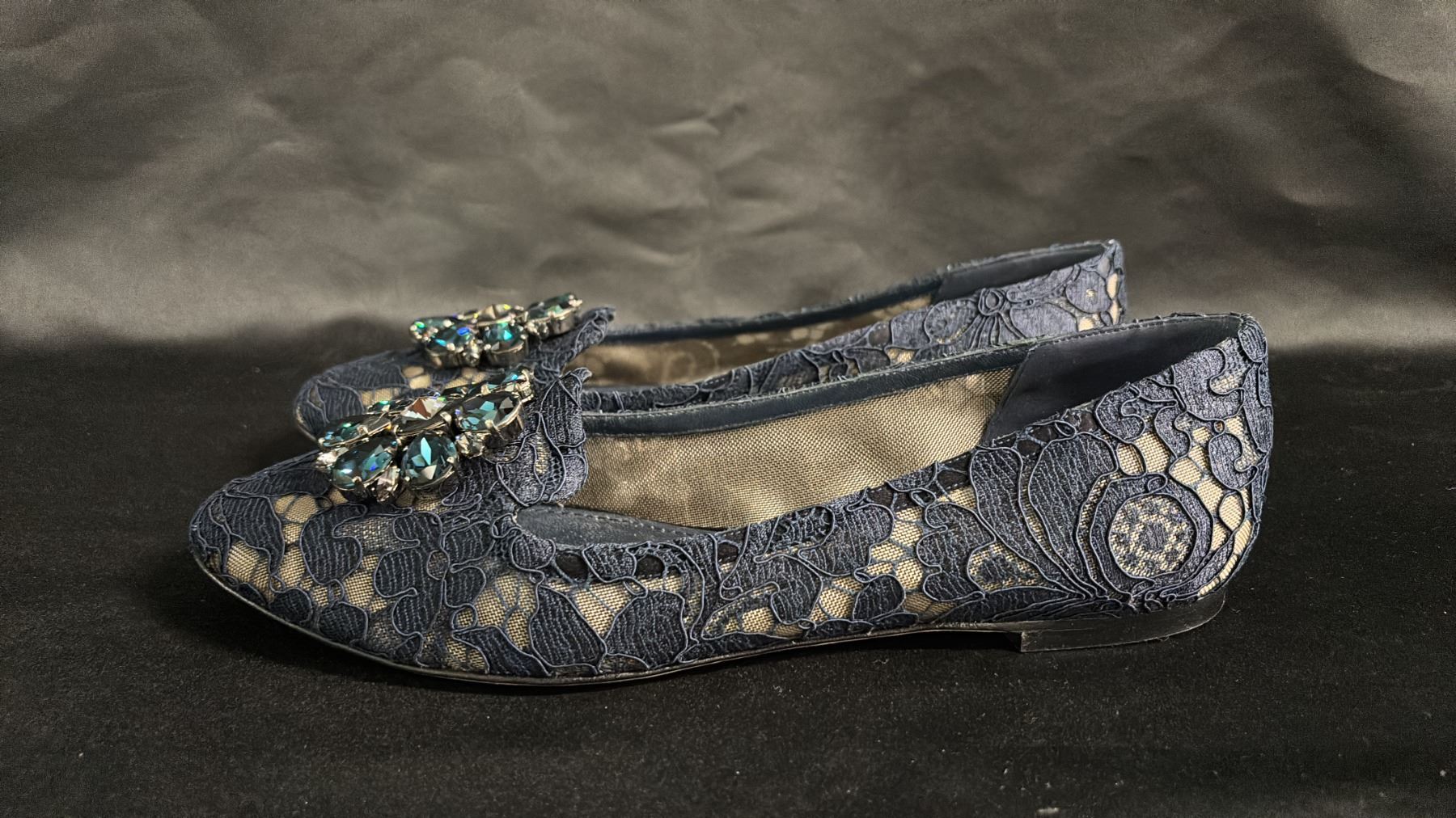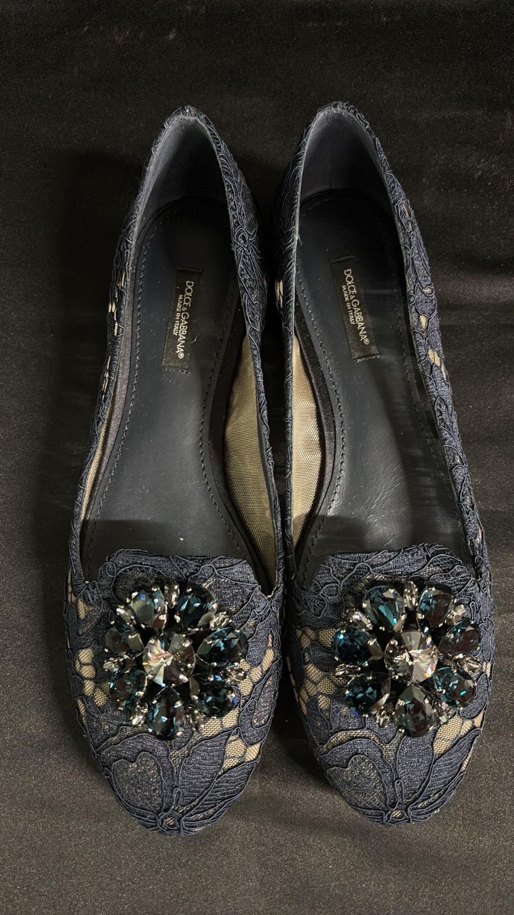 GENUINE DOLCE & GABANNA LACE BALLERINA FLATS WITH CRYSTAL EMBELLISHMENTS - LADIES SIZE 38.5