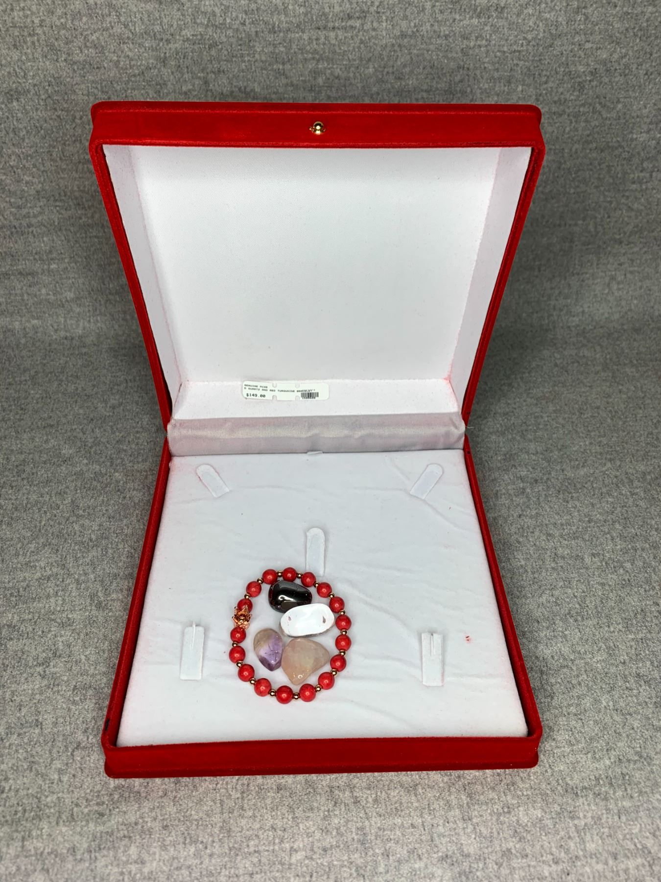 GENUINE MIXED QUARTZ & RED TURQUOISE BRACELET RETAIL $149