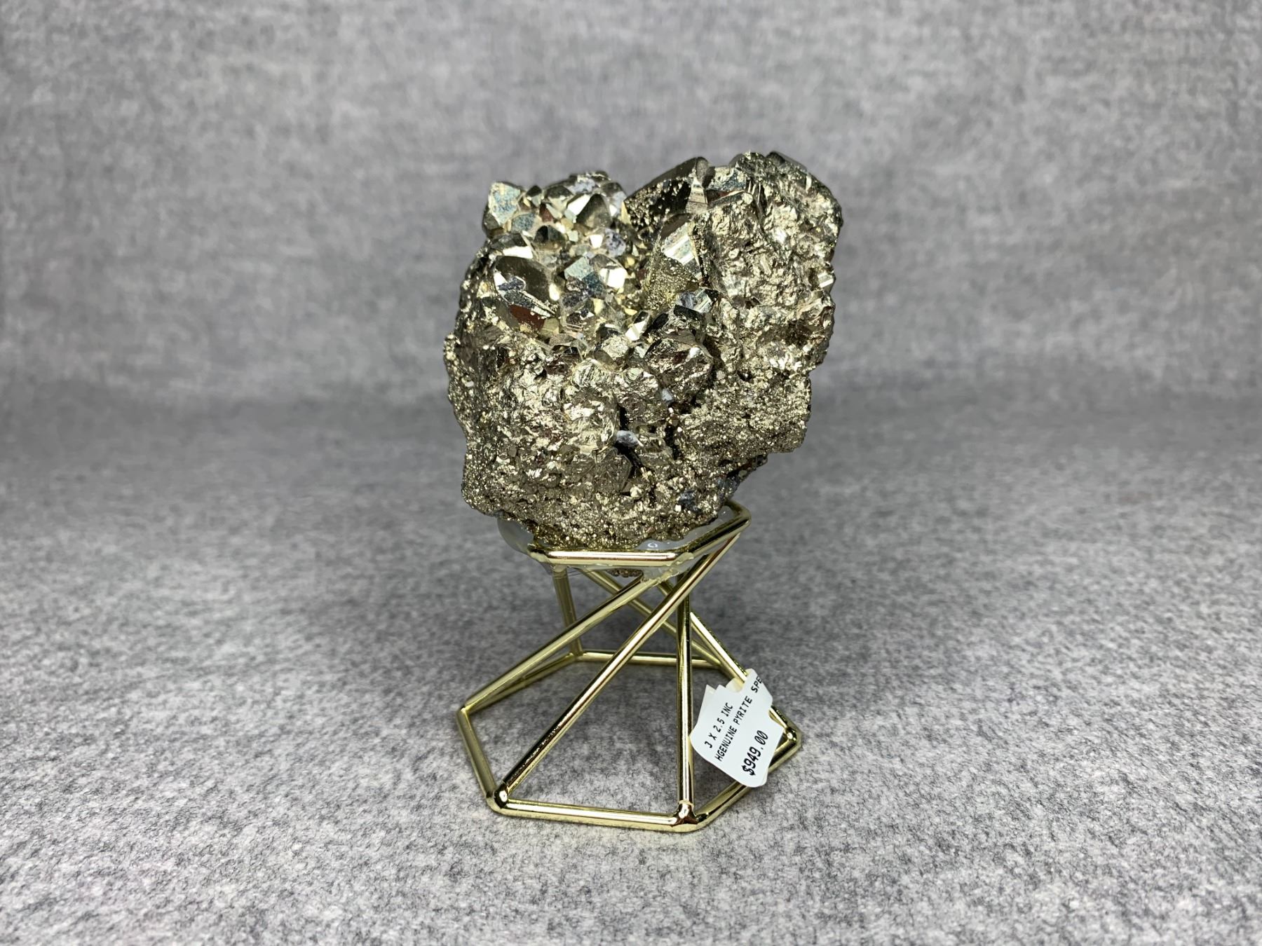 GENUINE PYRITE SPECIMEN ON METAL STAND 3 X 2.5" RETAIL $949