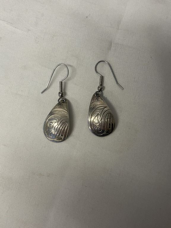 GENUINE VINTAGE STERLING SILVER HAIDA PAIR OF DANGLE EARRINGS, EACH HAND MARKED ND