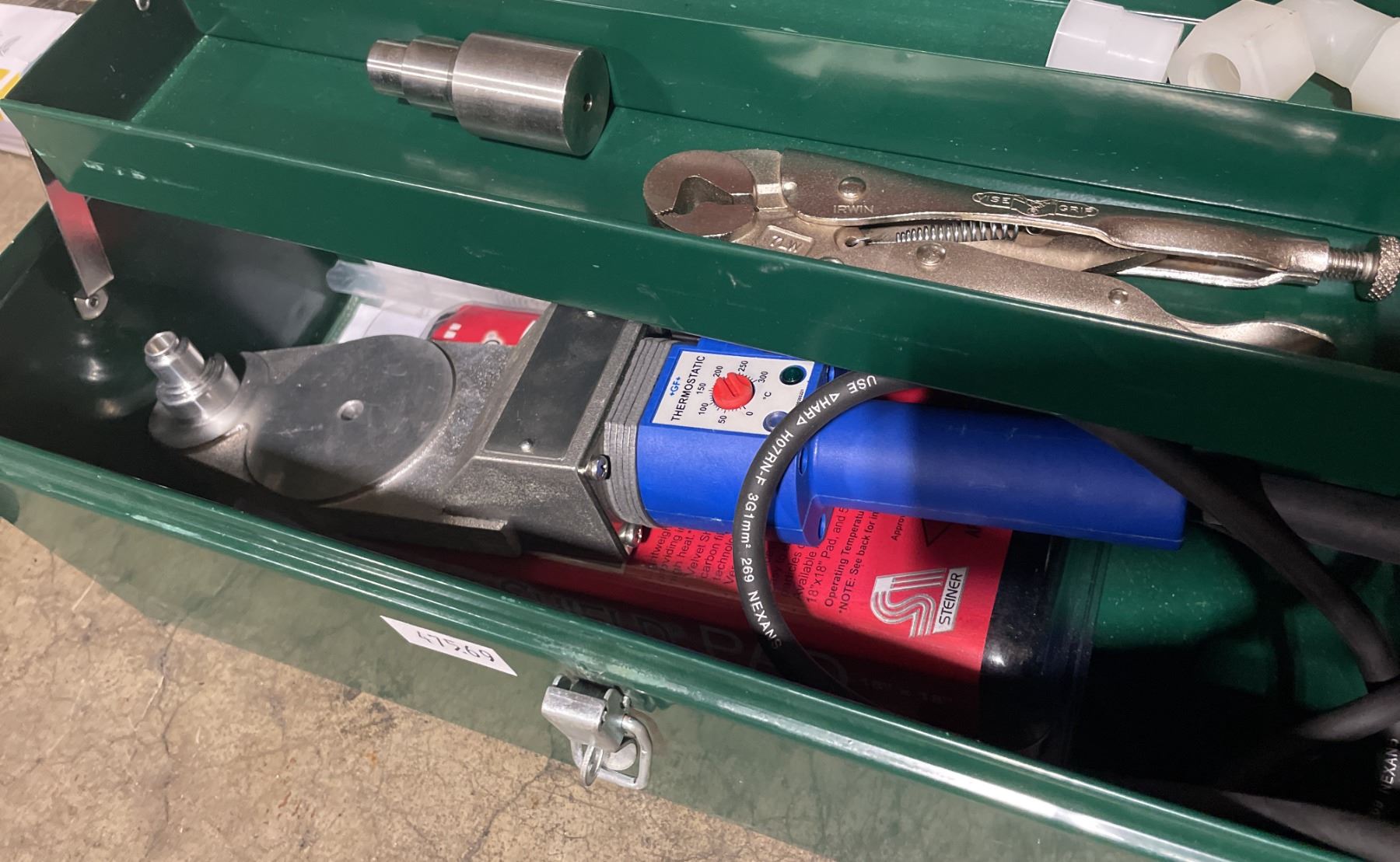 GEORG FISCHER OMICRON INDUSTRIAL ELECTRIC THERMOSTATIC SOCKET FUSION WELDER IN METAL PORTABLE TOOL BOX