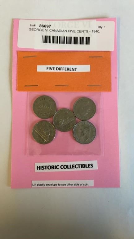 GEORGE VI CANADIAN FIVE CENTS - 1940, 1947x2, 1949, 1952