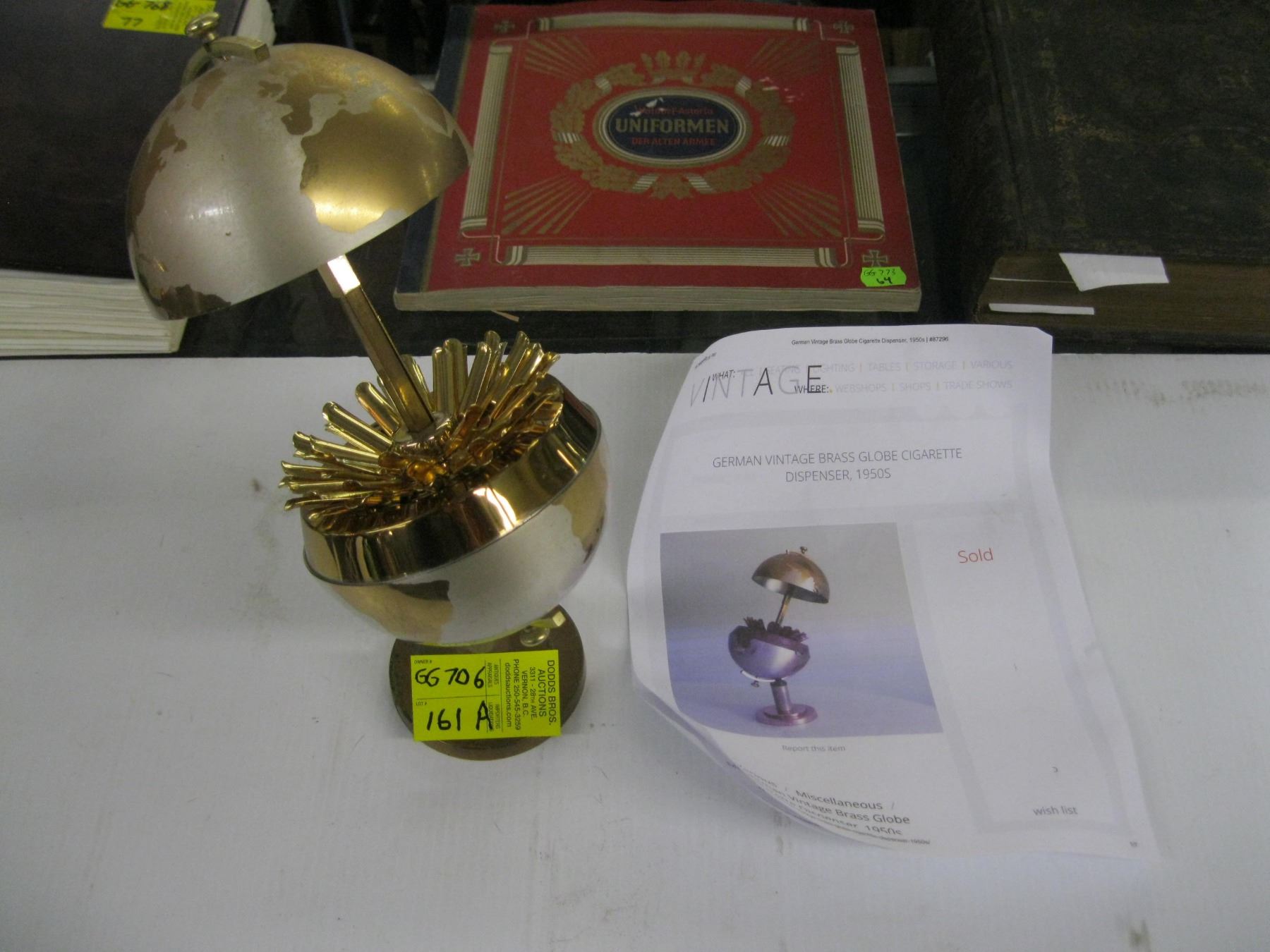 GERMAN VINTAGE BRASS GLOBE CIGARETTE DISPENSER, 1950s