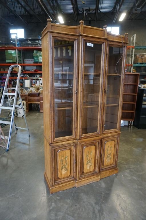 GLASS DOOR DISPLAY CABINET 81 INCHES TALL 41.5 INCHES WIDE, 14 INCHES DEEP
