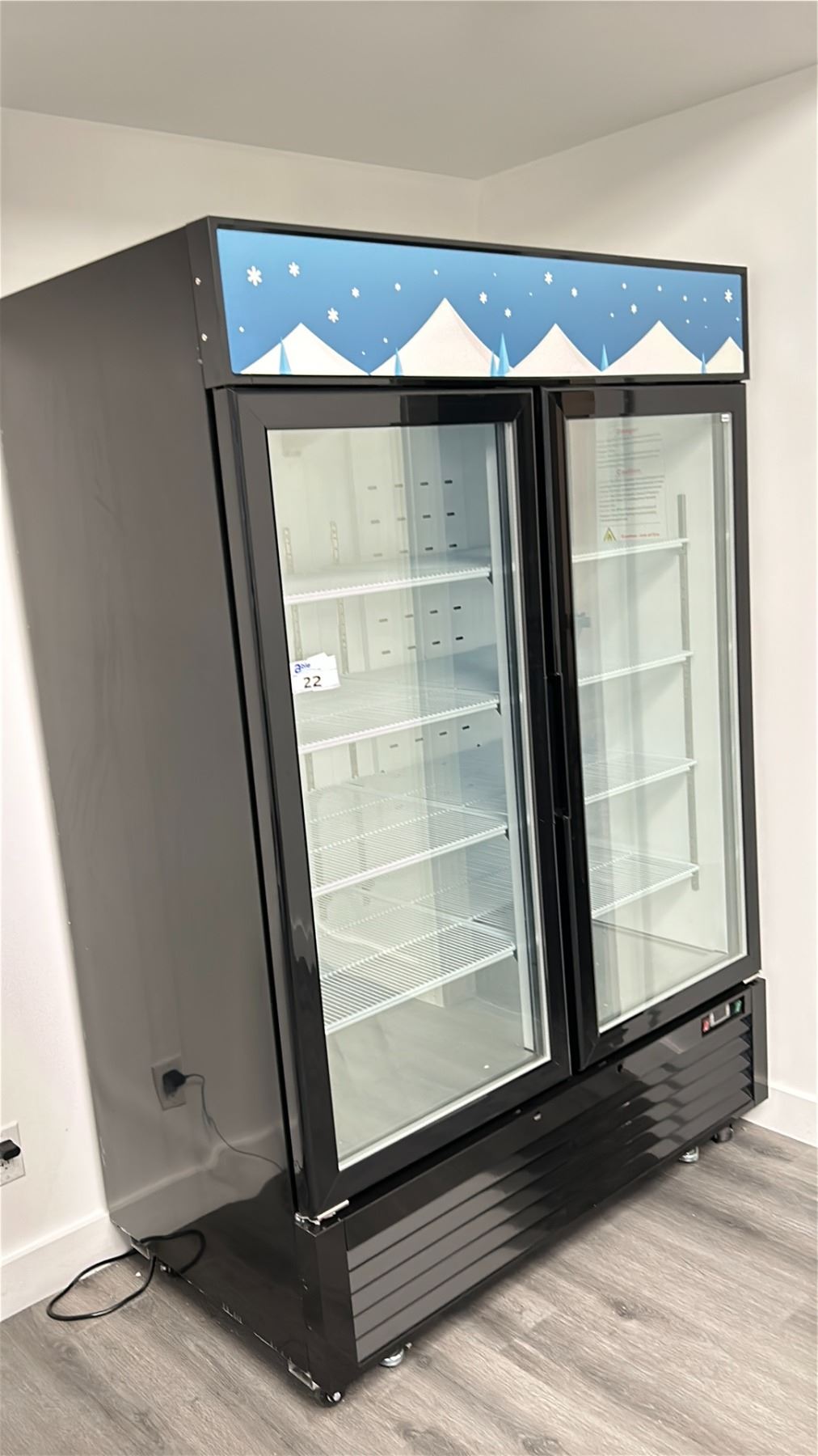 GLASS DOUBLE DOOR FREEZER. EXCELLENT LIKE NEW CONDITION. MODEL F2-54GDVC MFG 2021 *ITEM LOCATED OFFSITE - VANCOUVER ISLAND, NANAIMO*