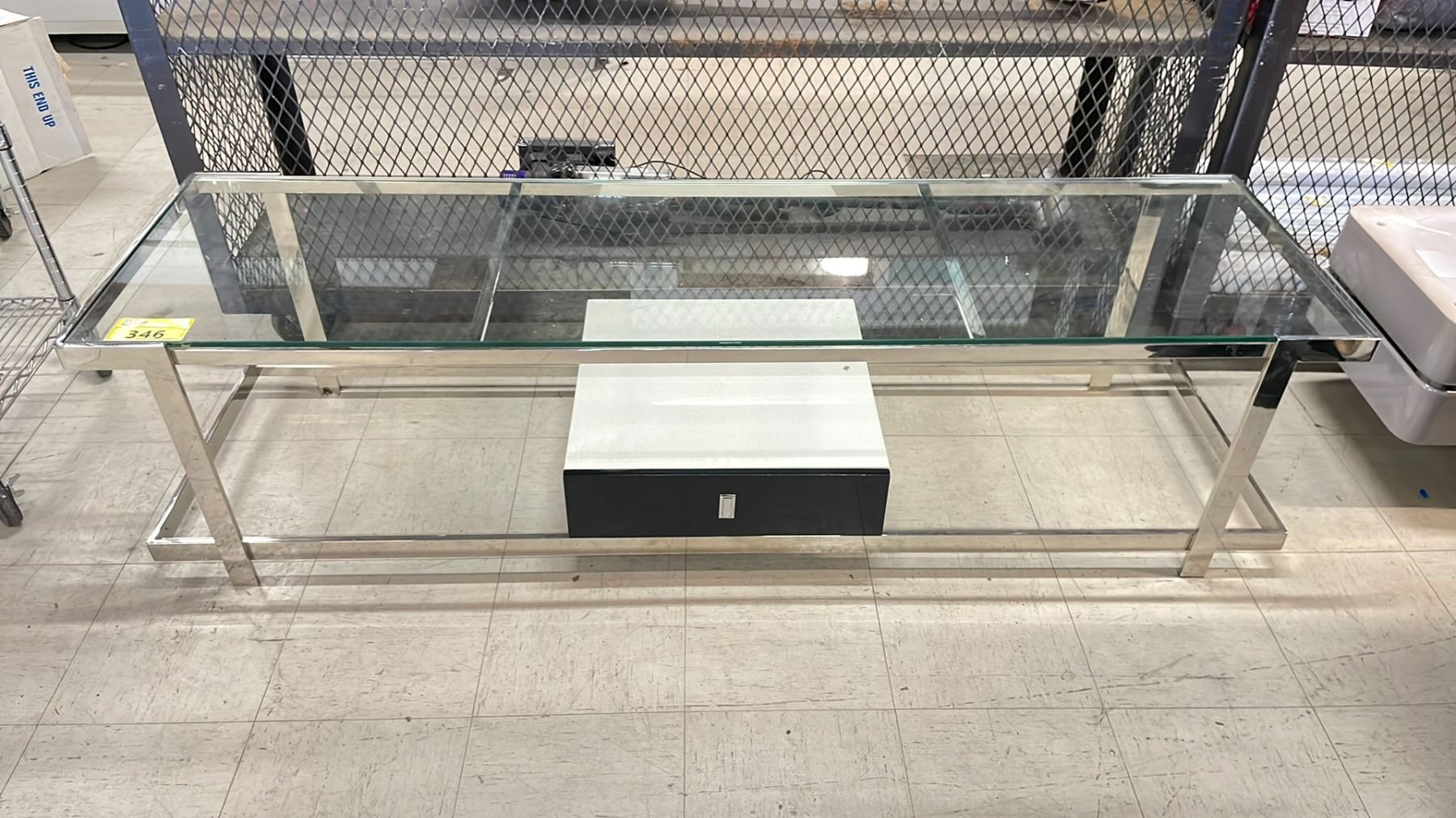 GLASS ENTERTAINMENT STAND WITH STORAGE DRAWER APPROX 71" X 17.5" X 18.5"