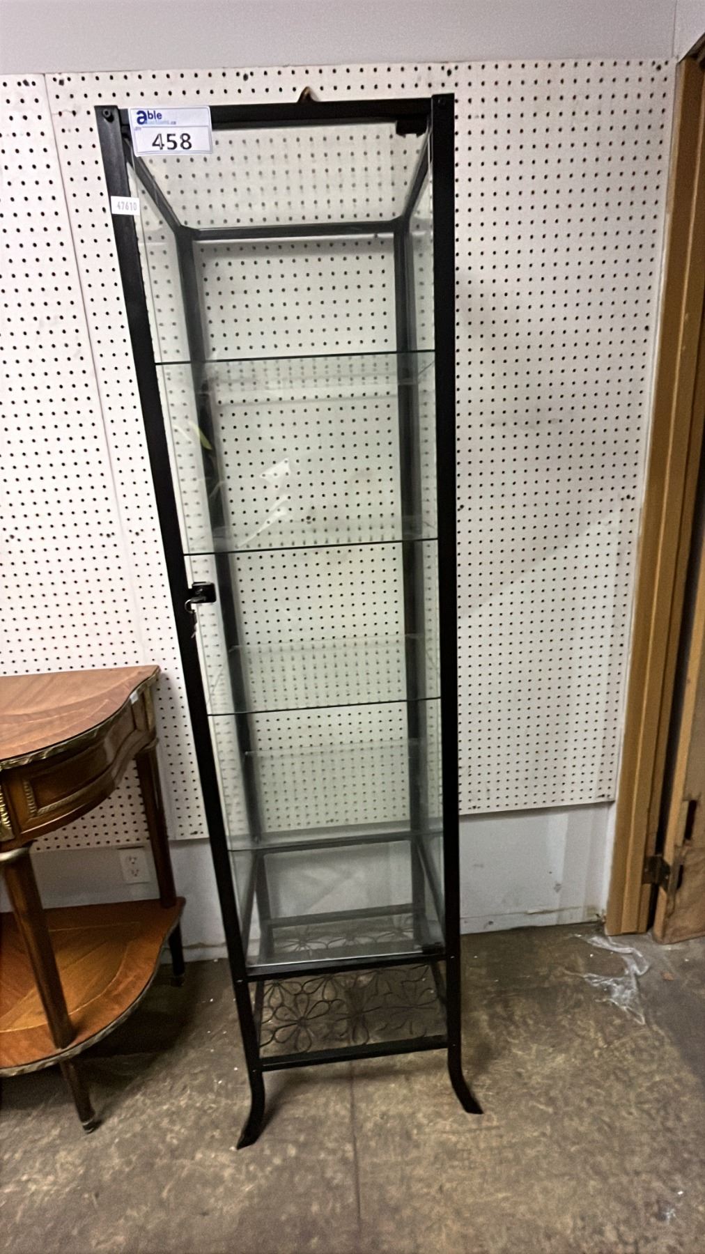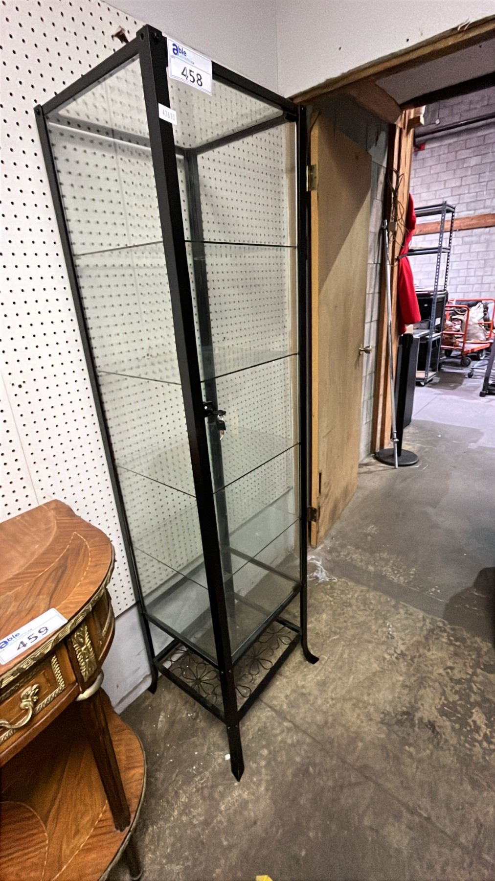 GLASS & METAL DISPLAY CABINET WITH KEYS - 71"T X 18"W X 16"D *ONE KEY IS BENT*