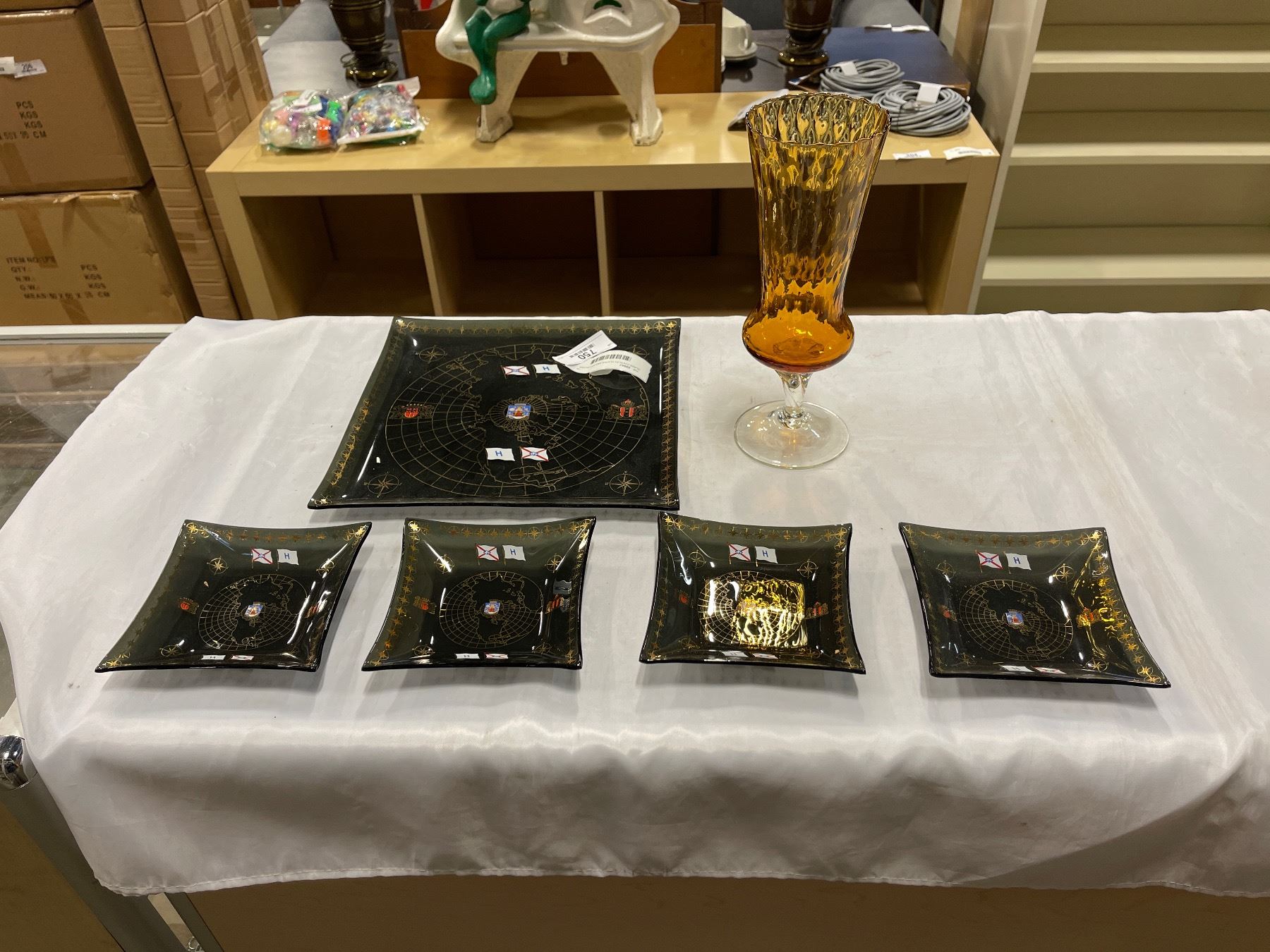 GLASS OVERLAY PLATES AND ART GLASS VASE