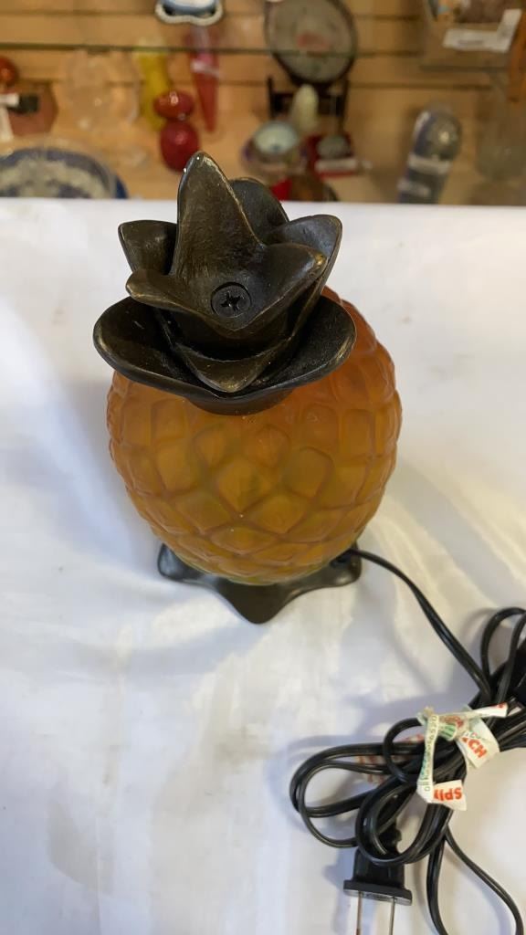GLASS PINEAPPPLE LAMP AND SMALL OIL LAMP