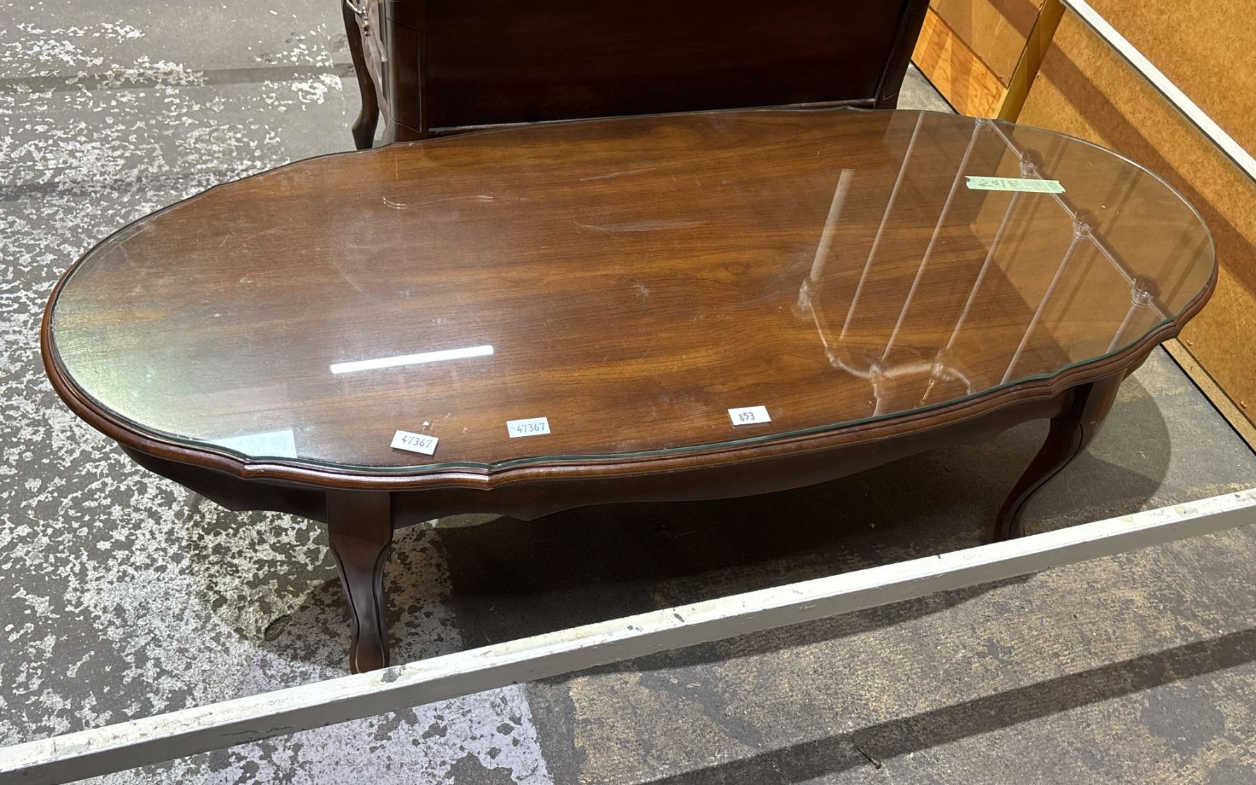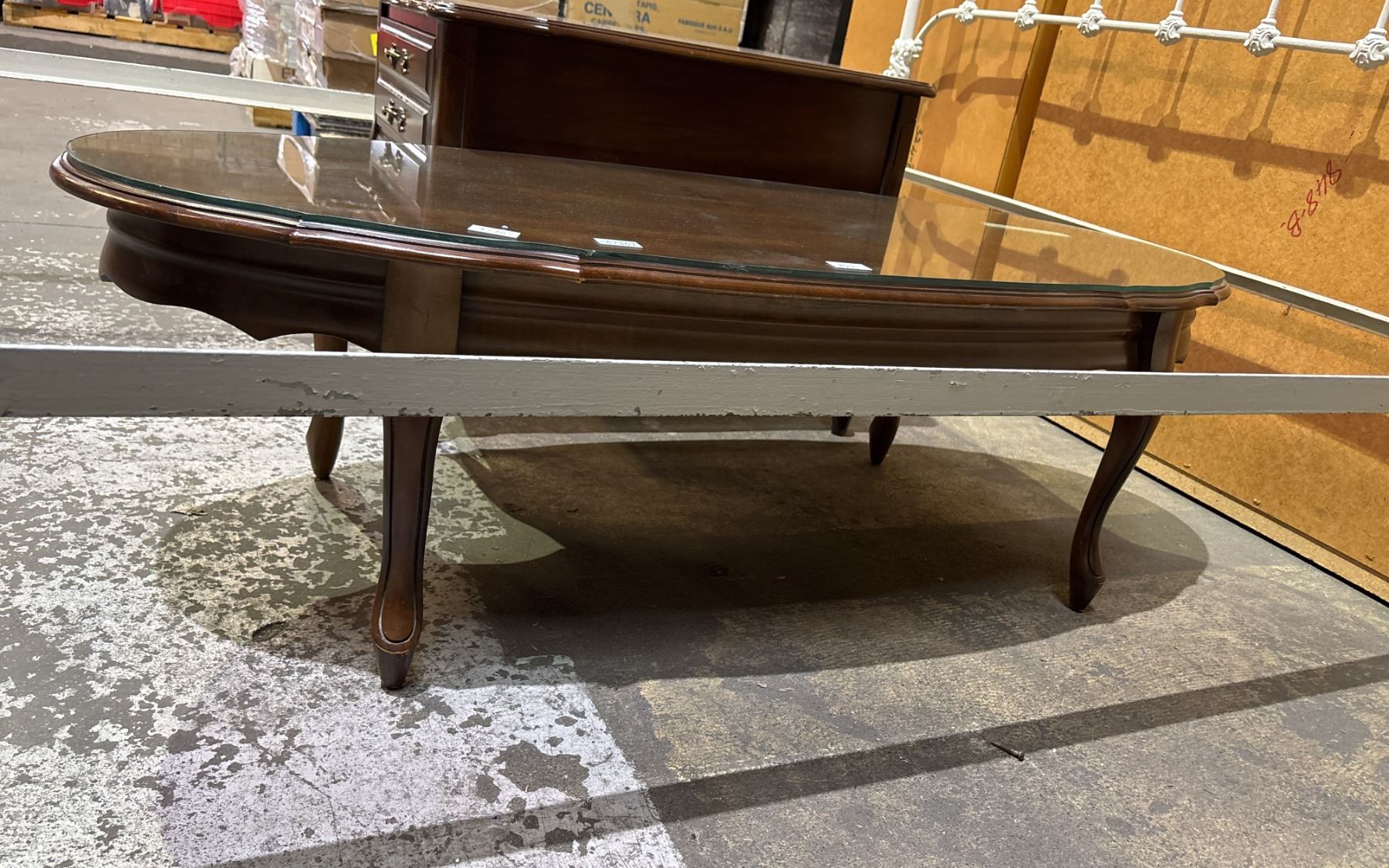 GLASS TOP COFFEE TABLE 49" X 21" X 15"